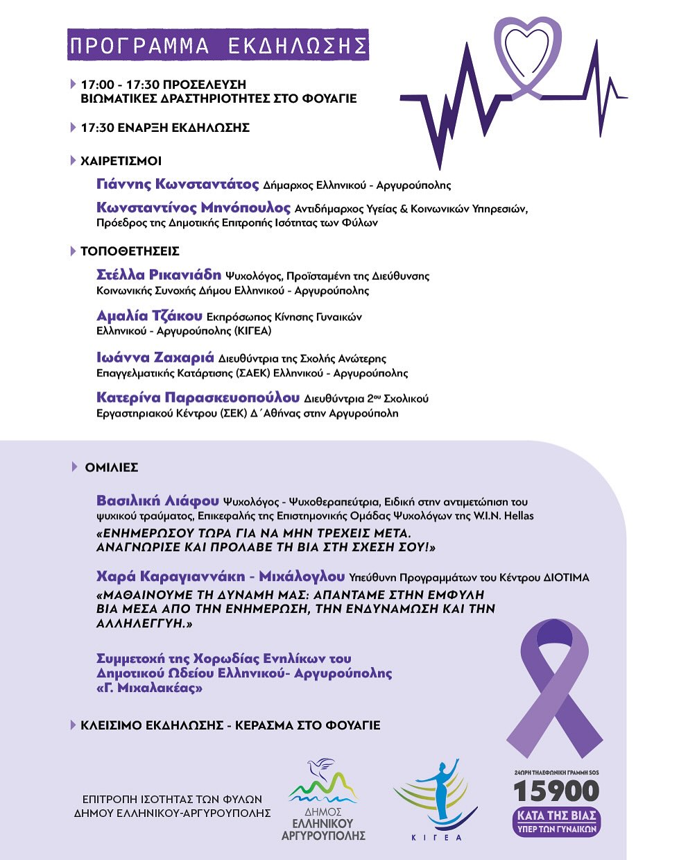 Αργυρούπολη: Εκδήλωση για την Παγκόσμια Ημέρα Εξάλειψης της Βίας κατά των Γυναικών