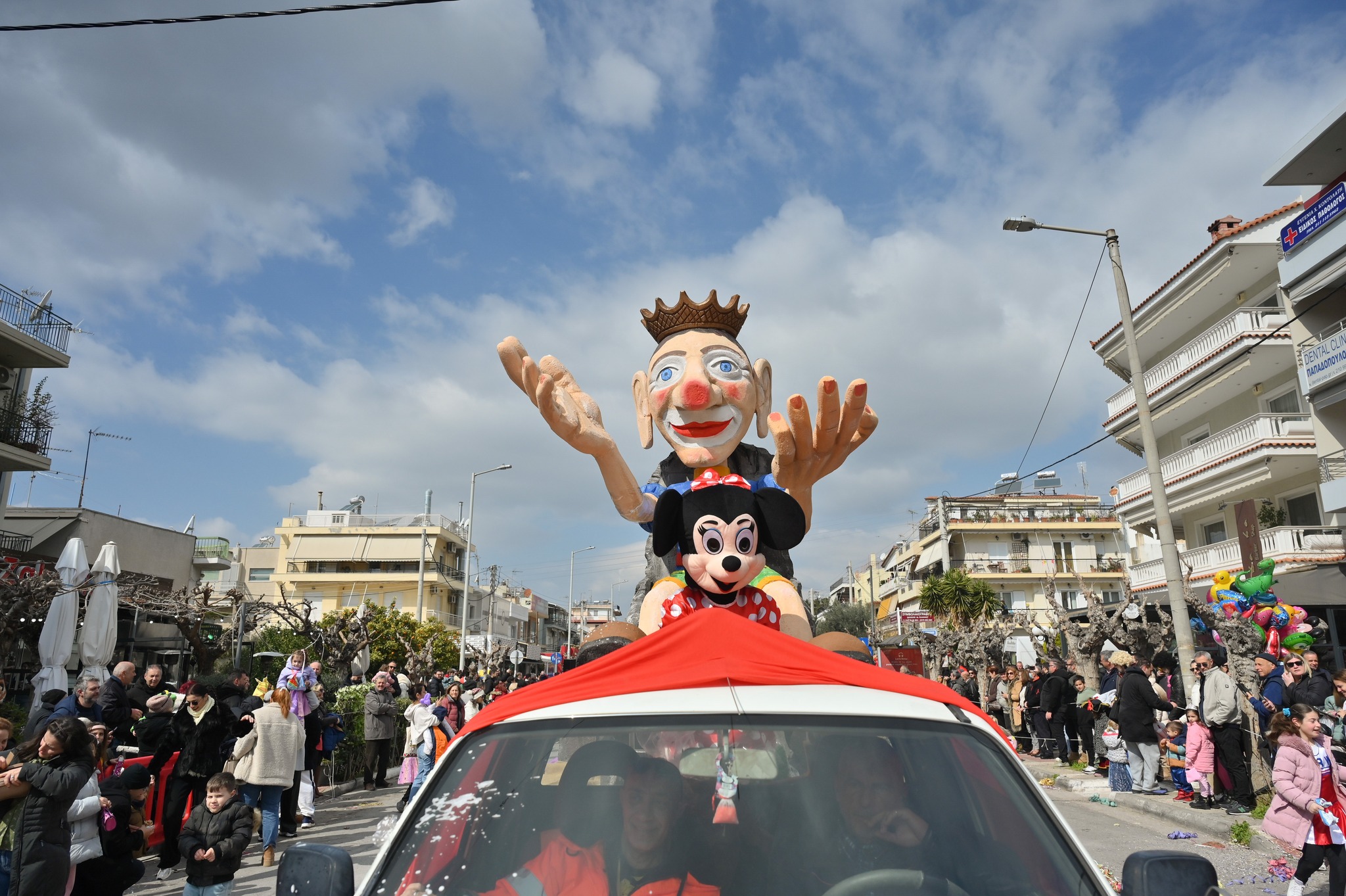 Η καρναβαλική παρέλαση ξεκινά στις 12:00 στη Λεωφόρο Μαρίνου Γερουλάνου, με μαθητές από τα σχολεία και συλλόγους της πόλης να παρελαύνουν πλάι σε ξυλοπόδαρους, μασκότ, ζογκλέρ και μπάντα κρουστών, δίνοντας τον παλμό για ένα αποκριάτικο ξεφάντωμα.