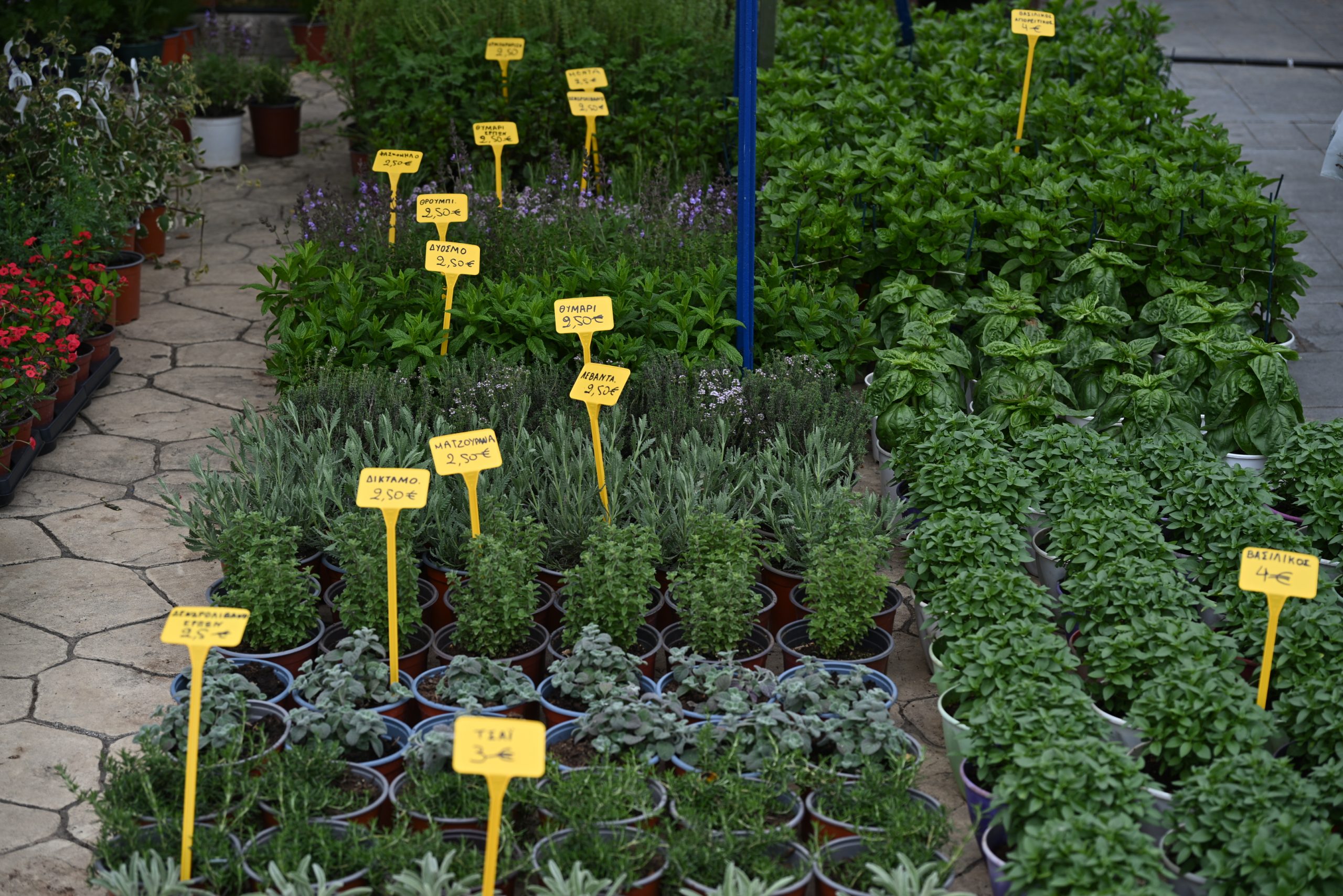 Από αρωματικά φυτά για τον κήπο και το μπαλκόνι – όπως ρίγανη, δεντρολίβανο, λεβάντα, δυόσμο και θυμάρι – μέχρι εντυπωσιακά εποχιακά λουλούδια όπως ντάλιες, γαρδένιες, τριαντάφυλλα και γεράνια, η έκθεση δίνει τον πιο χαρακτηριστικό ανοιξιάτικο τόνο.