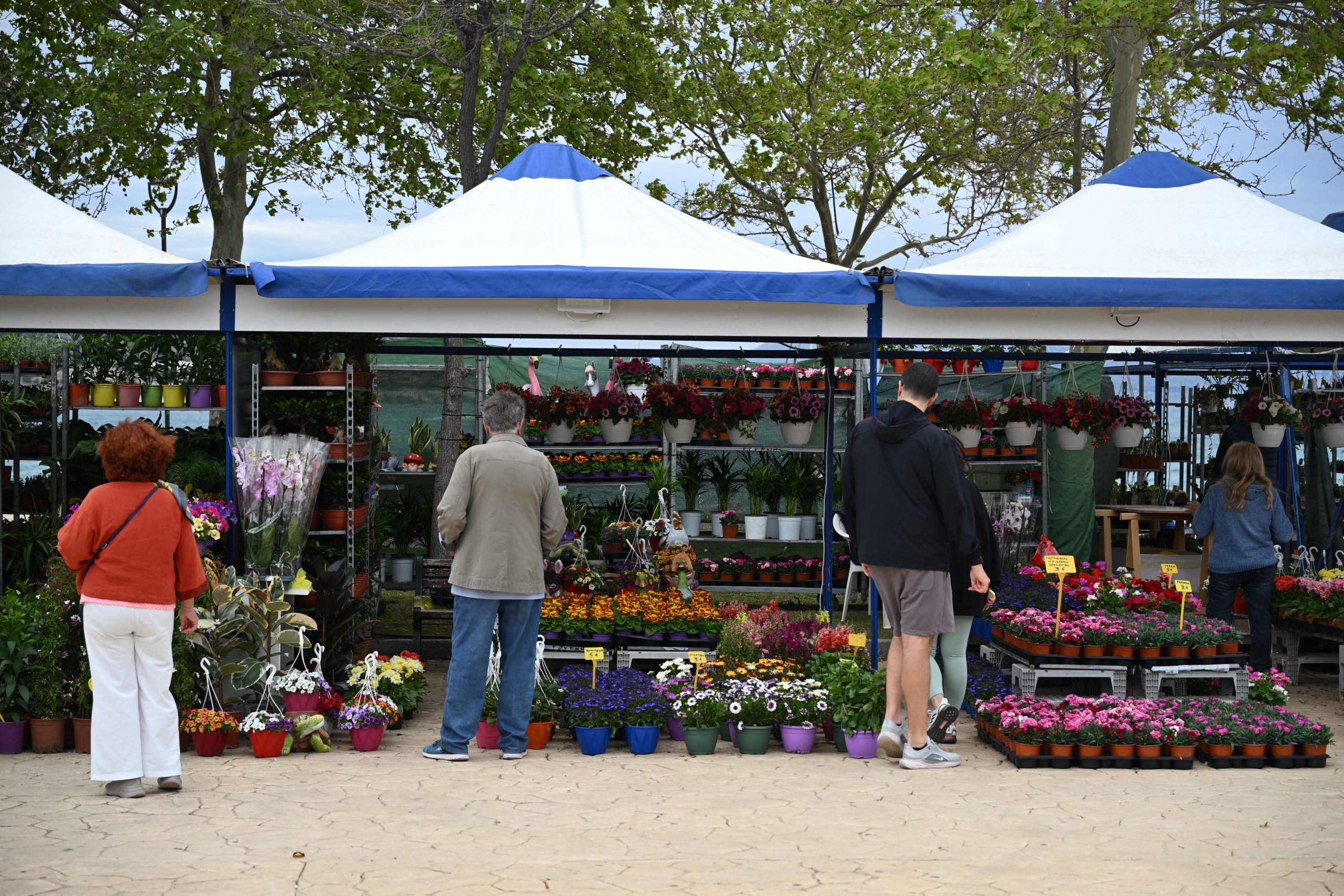 Σειρές από ανθισμένα φυτά ξεδιπλώνονται κατά μήκος του Πλακοστρώτου, ανάμεσα σε μυρωδιές από βασιλικό και γιασεμί, ενώ οι εκθέτες δεν περιορίζονται απλώς στην πώληση – μπαίνουν στη διαδικασία να σου εξηγήσουν πώς θα κρατήσεις ζωντανό το κάθε φυτό στο μπαλκόνι σου ή πώς μπορείς να στήσεις από την αρχή έναν μικρό κήπο. Δεν είναι μόνο η ποικιλία (που είναι μεγάλη), αλλά και η διάθεση. Ο κόσμος σταματάει, ρωτάει, χαζεύει, πιάνει κουβέντα.