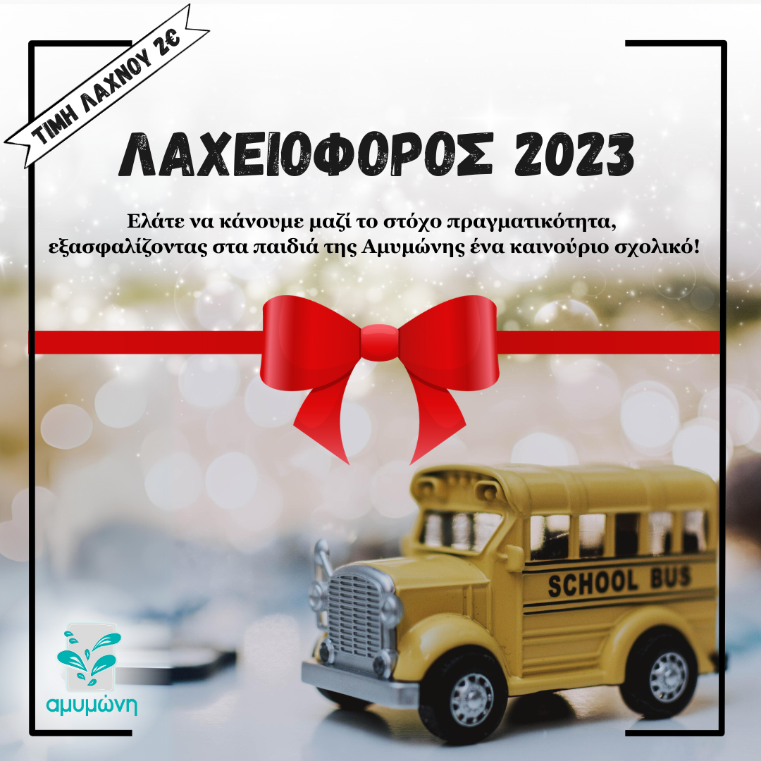 Η Αμυμώνη μας καλεί να συμμετέχουμε στη Λαχειοφόρο Αγορά που διοργανώνει, με τιμή λαχνού 2€, και στόχο αυτές τις γιορτές να κάνουμε όλοι μαζί δώρο στα παιδιά του Συλλόγου ένα καινούργιο σχολικό μίνι βαν!