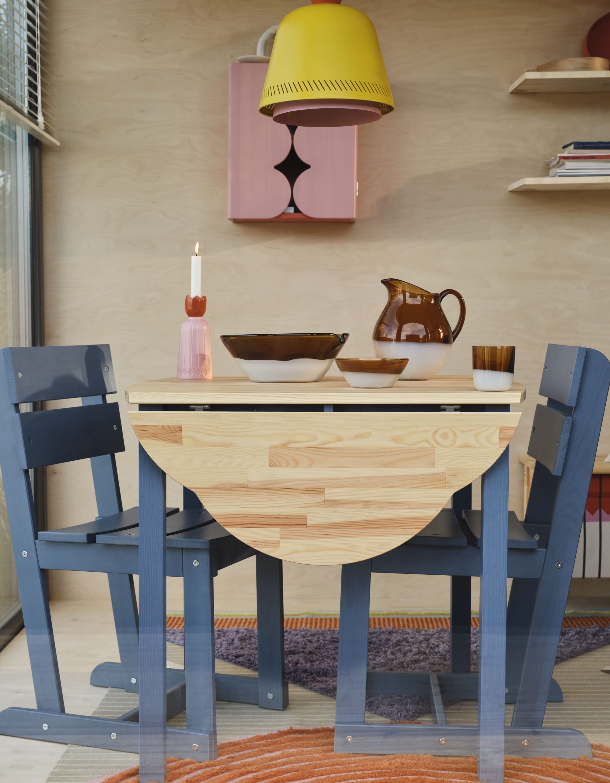 Χρώματα, σχήματα και έξυπνες λύσεις συνθέτουν την ξεχωριστή συλλογή OMMJÄNGE. Οι ξύλινοι δίσκοι είναι εμπνευσμένοι από τα παραδοσιακά σουηδικά κουτιά “svepask”, σε σχήμα σταγόνας με εργονομικές λεπτομέρειες που κάνουν τη μεταφορά και την αποθήκευσή τους εύκολη και διακοσμητικά ευέλικτη. Ο πάγκος με αποθηκευτικό χώρο συνδυάζει την πρακτικότητα των μπαούλων του 19ου αιώνα με μοντέρνα μοτίβα και τη δυνατότητα αλλαγής του κλεισίματος ή του υφάσματος, ενώ το ντουλάπι με καμπύλες παραπέμπει στα διακοσμητικά έπιπλα αποθήκευσης της εποχής, προσφέροντας κομψότητα και λειτουργικότητα. Το τραπέζι με πτυσσόμενα φύλλα αναβιώνει την ιδέα της ευέλικτης επίπλωσης για μικρούς χώρους, ενώ η καρέκλα με ελαφρώς κεκλιμένη πλάτη και ενισχυμένη κατασκευή εξασφαλίζει άνεση και στιλιστική λεπτομέρεια. Το τριγωνικό σκαμπό, μικρό και ελαφρύ, εμπνέεται από παραδοσιακά σκαμνιά και προσαρμόζεται εύκολα σε κάθε σημείο του σπιτιού.