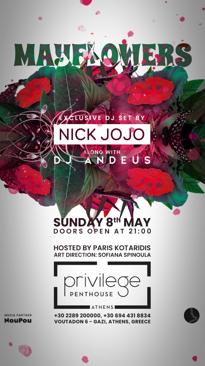 Την Κυριακή 8 Μαΐου, το Privilege Penthouse, το spot για διασκέδαση και υψηλή γαστρονομία στην καρδιά της Αθήνας, μας προσκαλεί σε ένα ιδιαίτερο πάρτι. Σε μια μοναδική τοποθεσία, με θέα την Ακρόπολη, οι πόρτες θα ανοίξουν στις 21:00 για ένα event με exclusive dj set από τον Nick JoJo και τους house ρυθμούς του που θα μας παρασύρουν. Μαζί του θα είναι ο Dj Andeus.