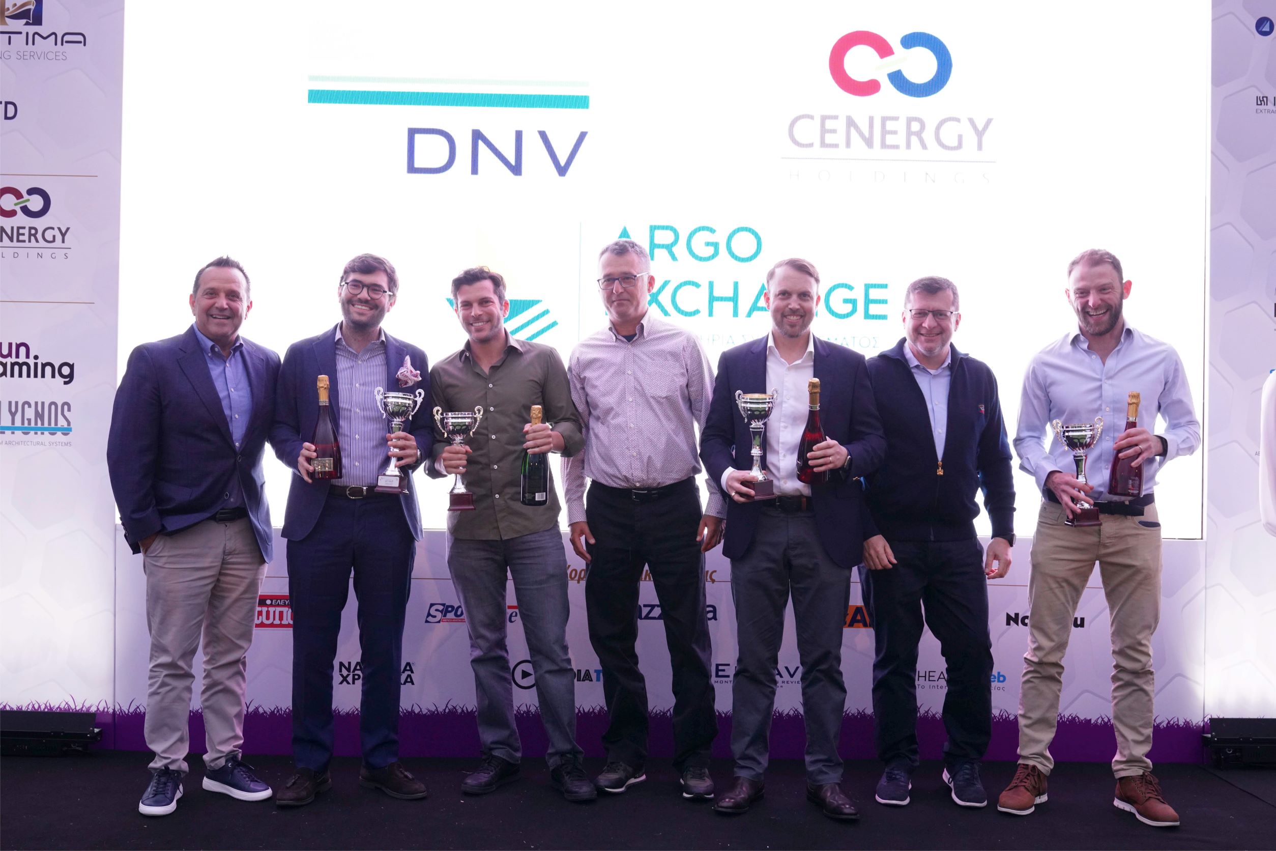 Τα βραβεία της 3ης Νικήτριας ομάδας παρέδωσαν οι Silver χορηγοί της εκδήλωσης κ.κ. Χρήστος Παναγόπουλος Διευθύνων Σύμβουλος της ARGO EXCHANGE, Βασίλης Καρνέζης, Γενικός Διευθυντής Επιχειρήσεων της Cenergy Holdings και ο κ. Χιωτόπουλος Ιωάννης, Senior Vice President @ Regional Manager of South East Europe, Middle East & Africa της DNV στους κ.κ. Jamie Nairn, Ben Rogers, Ioannis Webster και Νικόλαο Αλεξιάδη.