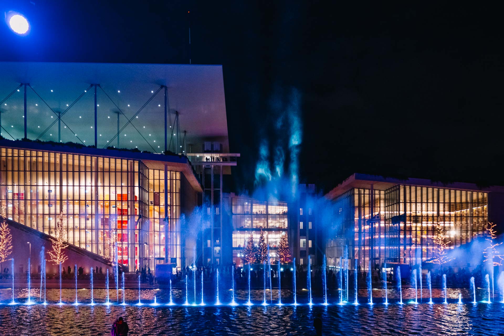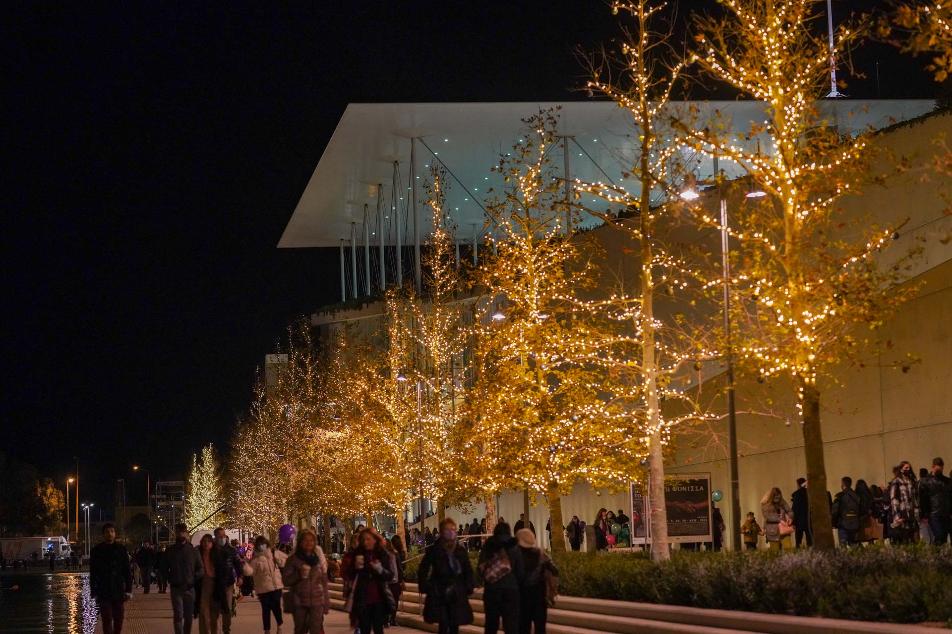 Οι χώροι ντύνονται με χιλιάδες λαμπιόνια, οι φωτιστικές εγκαταστάσεις μεταμορφώνουν το Πάρκο Σταύρος Νιάρχος σε ένα ονειρικό σκηνικό, τα φωταγωγημένα έλατα δεσπόζουν στην Αγορά και το γιορτινό φως τρυπώνει σε κάθε γωνιά με τη μουσική να ταξιδεύει μαζί του.