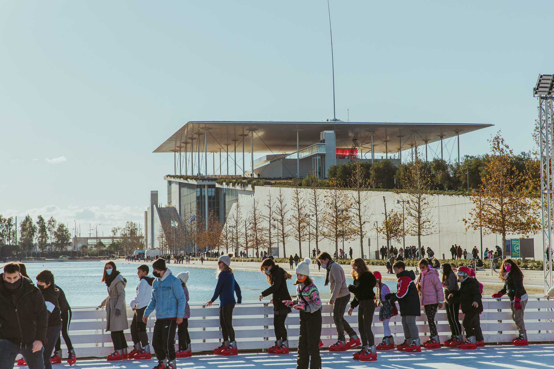 Το Παγοδρόμιο λειτουργεί καθημερινά από την 01/12/22 μέχρι τις 31/01/23 από τις 10.00 το πρωί μέχρι τις 22.00 το βράδυ, εφόσον το επιτρέπουν οι καιρικές συνθήκες. Η είσοδος στο Παγοδρόμιο είναι ελεύθερη με ηλεκτρονική προεγγραφή στο SNFCC.org/Icerink2022.