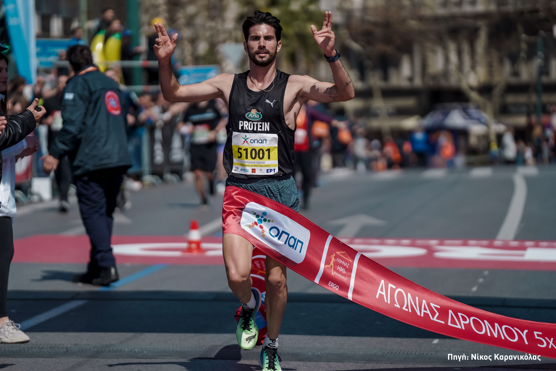 Ο Παναγιώτης Καραΐσκος, πέρασε πρώτος την γραμμή του τερματισμού στον αγώνα των 21 χιλιομέτρων, σε μία από τις κλασικότερες διαδρομές της Ελλάδας. Ο δρομέας διατήρησε τον τίτλο του για δεύτερη συνεχόμενη χρονιά, φτάνοντας συνολικά τα 5 χρυσά μετάλλια στο αγώνισμα. Έτσι λοιπόν, άφησε πίσω τους αντιπάλους του και κατέγραψε τον ασυναγώνιστο χρόνο των 1:07:59.