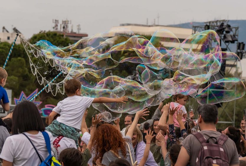 Χαρά, όνειρο, χαμόγελα και αμέτρητες στιγμές ανεμελιάς ζωντανεύουν μέσα από μια παρέλαση με χιλιάδες σαπουνόφουσκες. Oι La Petite Marguerite προσκαλούν μικρούς και μεγάλους σε ένα συλλογικό αιωρούμενο παιχνίδι.