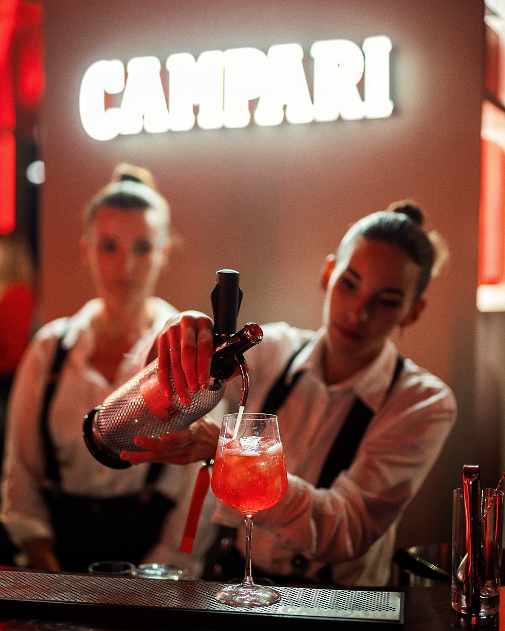 Οι λαμπεροί προσκεκλημένοι είχαν την ευκαιρία να αναλάβουν για λίγο τον ρόλο του σκηνοθέτη, παρακολουθώντας τη ζωντανή μετάδοση της δράσης των Καννών, απολαμβάνοντας παράλληλα signature cocktails όπως Negroni, Campari Spritz & Negroni Sbagliato, τα οποία επιμελήθηκαν παγκοσμίου φήμης bartenders. Η εντυπωσιακή συλλεκτική φιάλη Campari 3L που δημιουργήθηκε αποκλειστικά για το 77ο Φεστιβάλ Καννών και φέρει το χρυσό λογότυπό του, με μόλις 500 αριθμημένα κομμάτια σε όλο τον κόσμο, πρωταγωνίστησε στο μοναδικό σκηνικό των Campari bars.