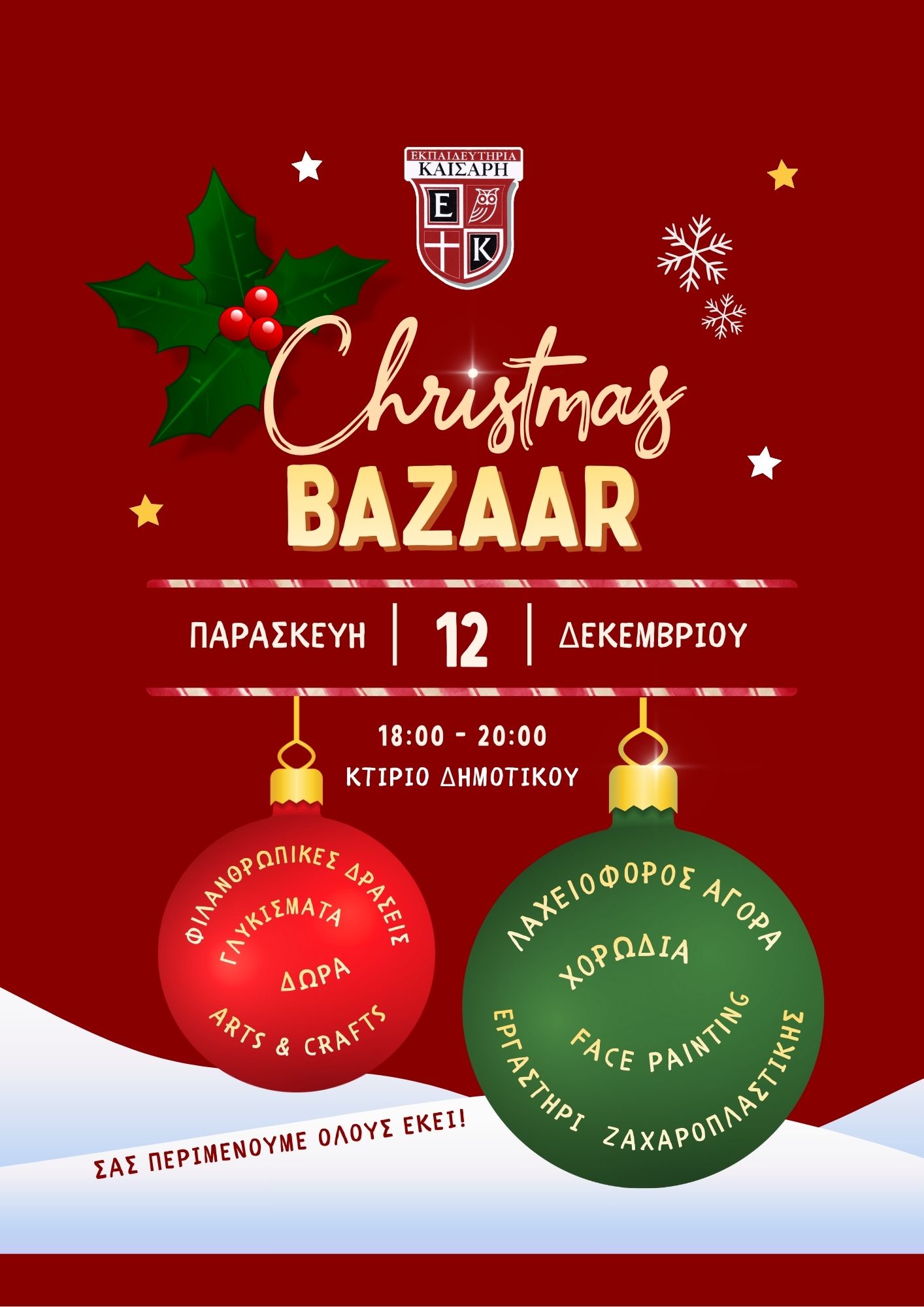 Με δημιουργίες των μαθητών, χριστουγεννιάτικες μελωδίες και δράσεις προσφοράς, το Χριστουγεννιάτικο Παζάρι των Εκπαιδευτηρίων Καίσαρη επιστρέφει στις 12 Δεκεμβρίου.