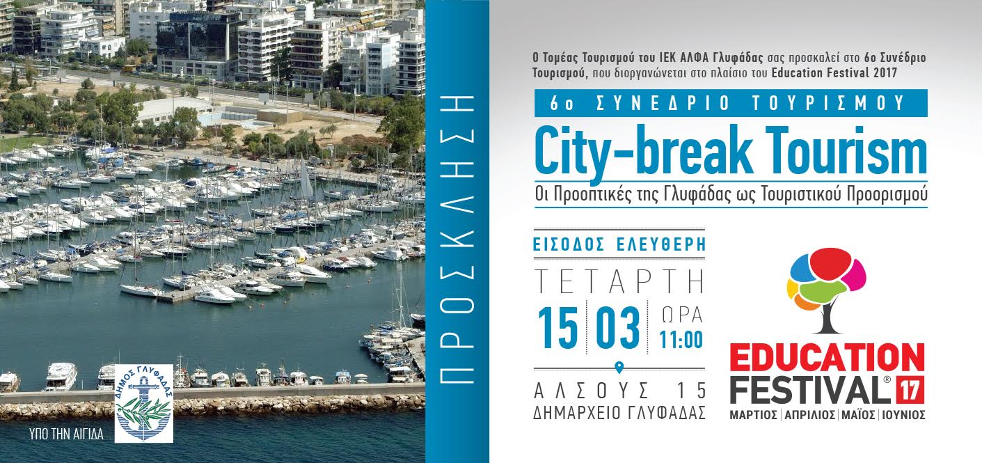 Το 6ο Συνέδριο Τουρισμού, με θέμα «City-break Tourism: Οι προοπτικές της Γλυφάδας ως Τουριστικού Προορισμού», που διοργανώνει ο Τομέας Τουρισμού του ΙΕΚ ΑΛΦΑ Γλυφάδας, στο Δημαρχείο Γλυφάδας είναι γεγονός.