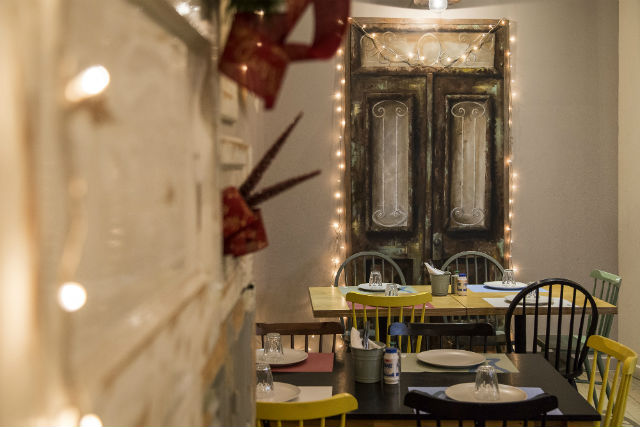 Μπαίνοντας, λοιπόν, στο Mezze το πρώτο πράγμα που μας έκανε εντύπωση είναι αυτή η αίσθηση ότι μπαίνεις σ’ ένα σπίτι φίλου. Αν σηκώσεις το κεφάλι σου ψηλά χαμογελάς ενθουσιασμένος βλέποντας τις σιδεριές από μπαλκόνια που «ντύνουν» το ταβάνι και αν κοιτάξεις γύρω σου θα δεις το vintage που θυμίζει παλιά Αθήνα, δημιουργικά αφομοιωμένο στο σήμερα, και το upcycling να σου δίνει ιδέες και για το δικό σου σπίτι με αντικείμενα που δεν είχες φανταστεί.
