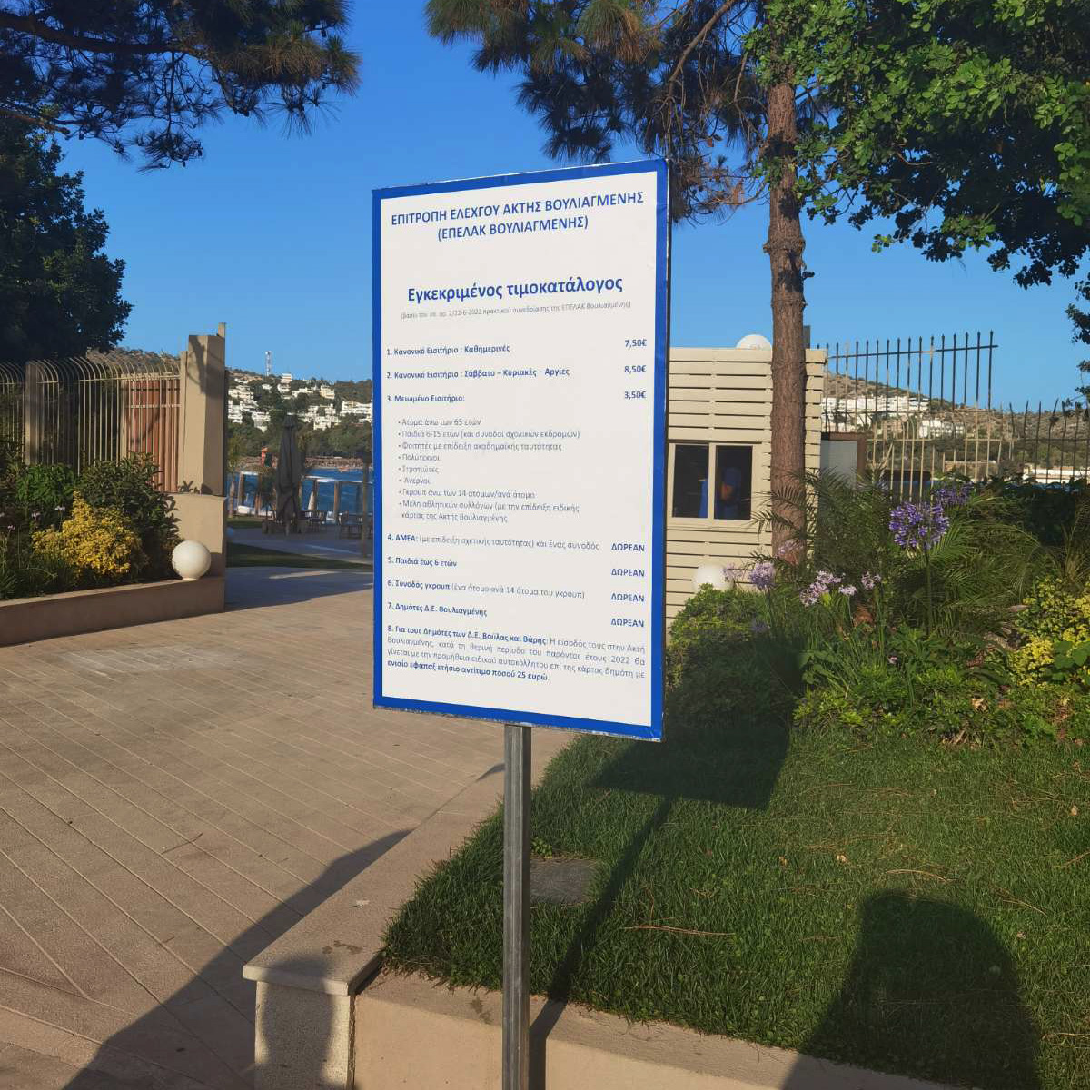 Aσαφής παραμένει η κατάσταση με τις τιμές εισόδου στην Ακτή Βουλιαγμένης - Ο δήμος ανάρτησε πινακίδα με νέες τιμές, όμως Ακτή και ΕΤΑΔ φαίνεται να επιμένουν στον δικό τους τιμοκατάλογο