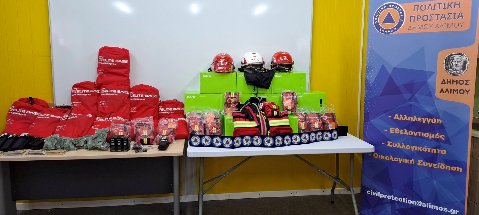 Ο Δήμος Αλίμου παρέλαβε νέο υλικό που περιλαμβάνει γιλέκα διάσωσης, κράνη προστασίας και εξοπλισμό για να ενισχύσει τις εθελοντικές ομάδες Πολιτικής Προστασίας του Δήμου.