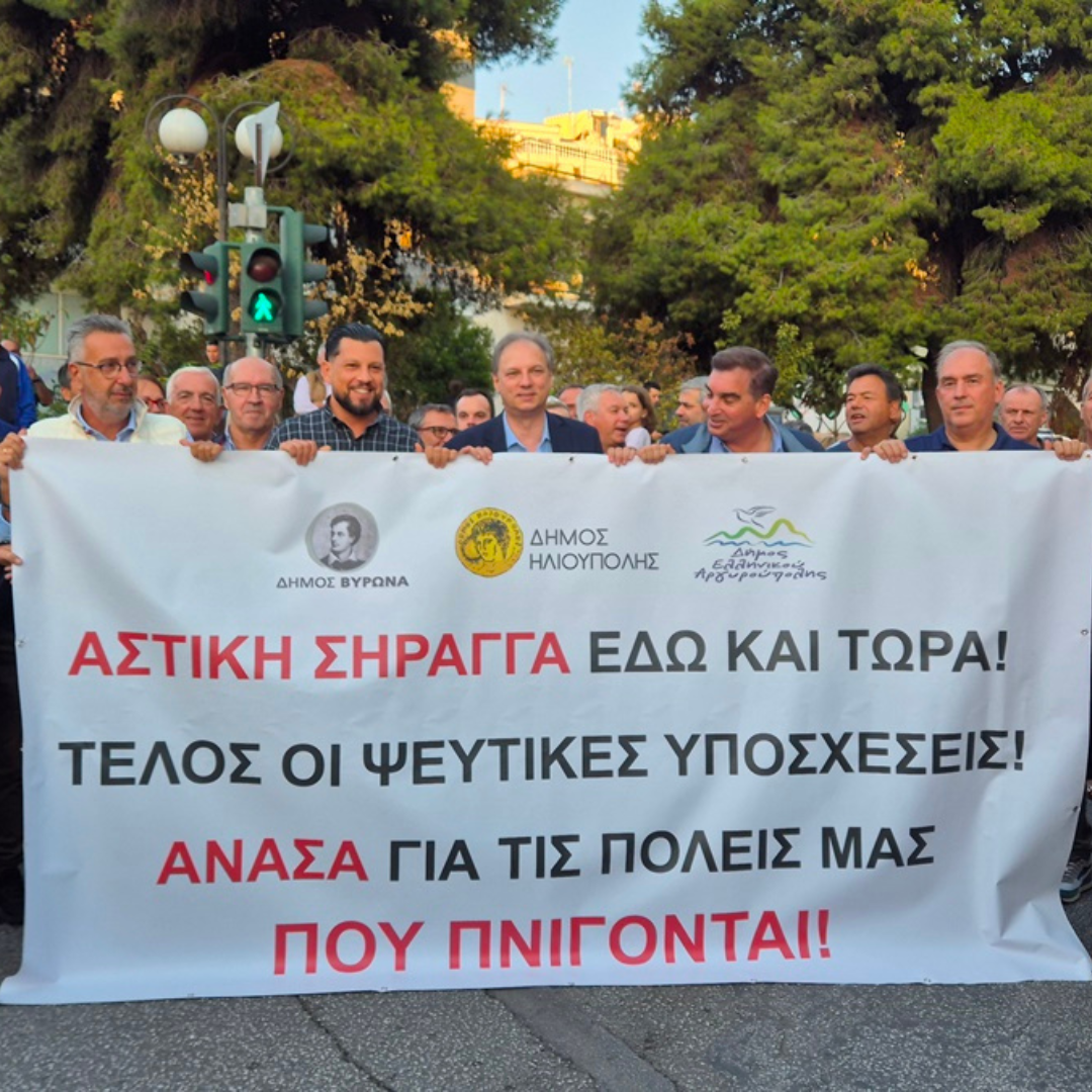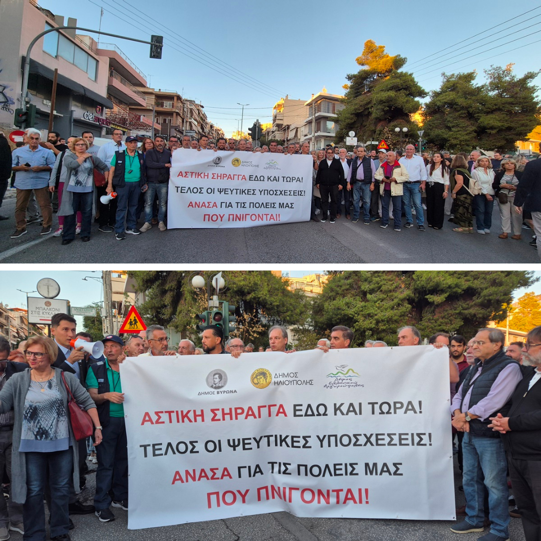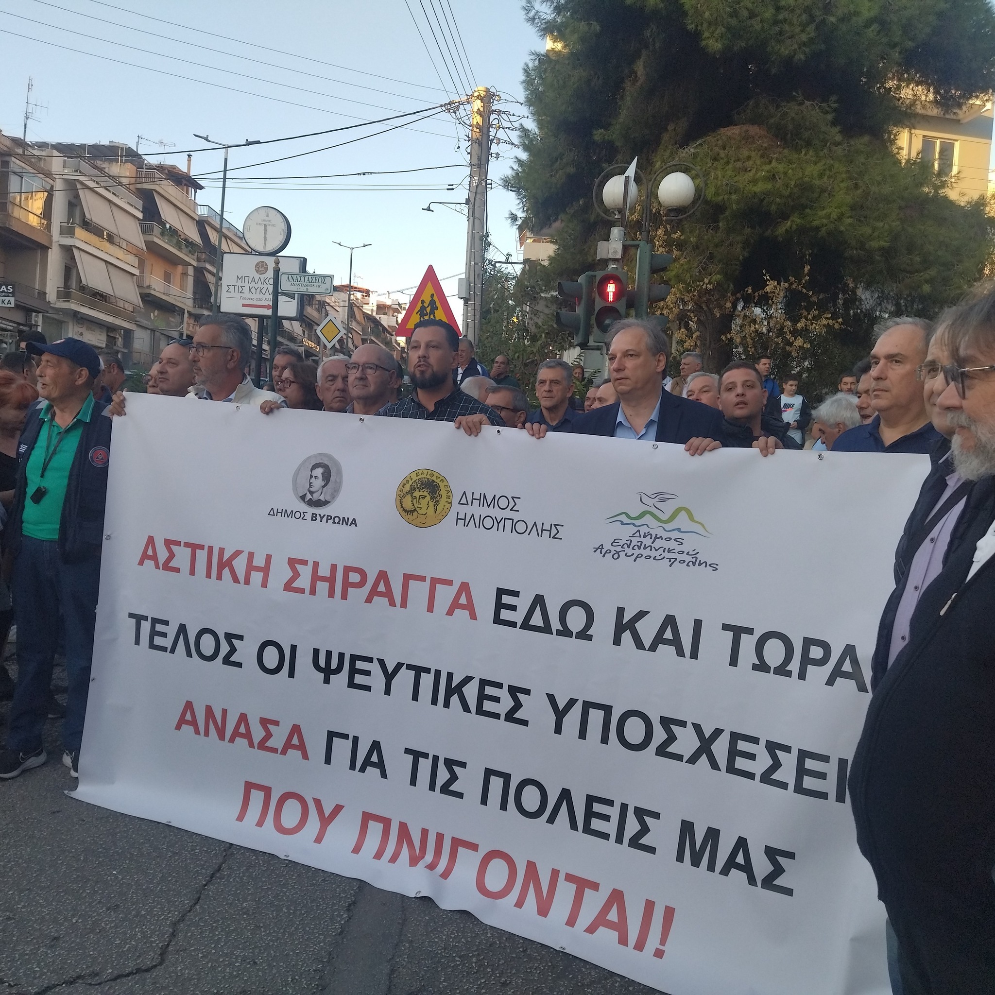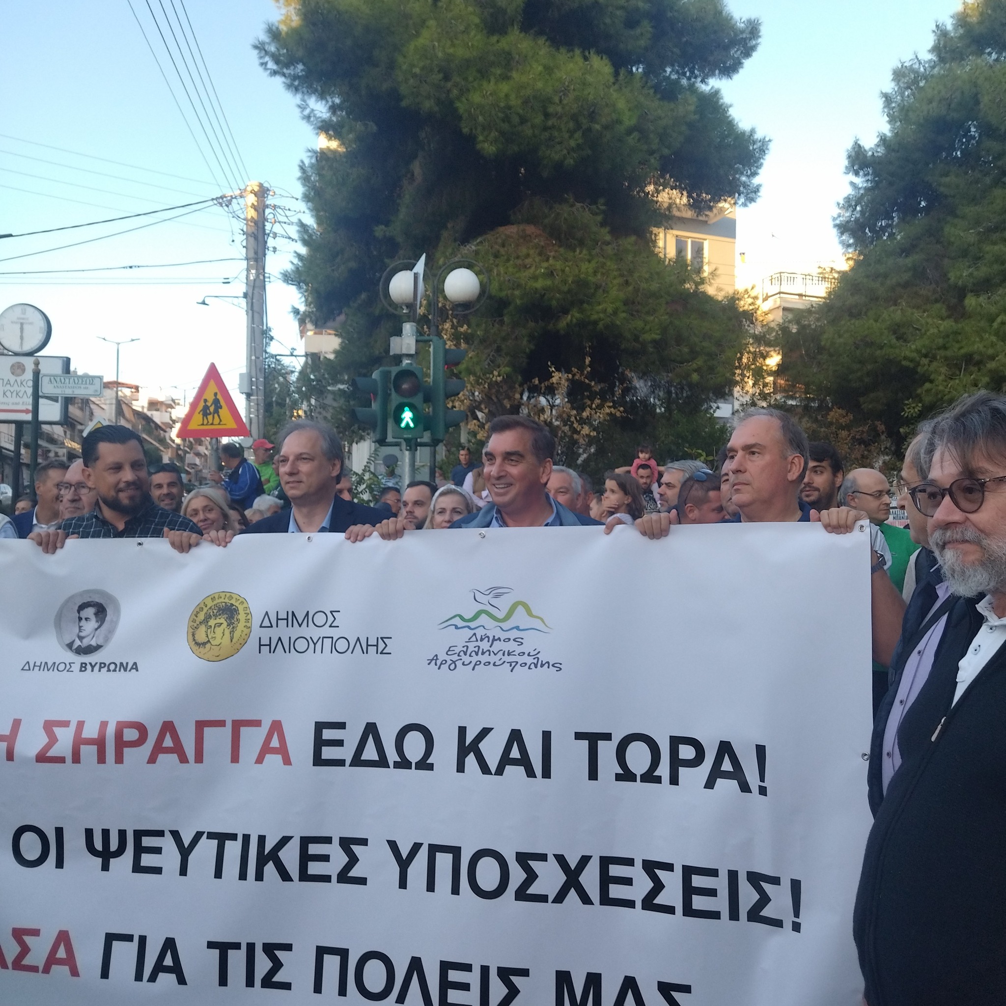 Συγκέντρωση διαμαρτυρίας πραγματοποίησαν το απόγευμα της Δευτέρας 29 Σεπτεμβρίου οι Δήμοι Ηλιούπολης, Βύρωνα, Ελληνικού – Αργυρούπολης, Αγίου Δημητρίου και Δάφνης – Υμηττού, στη συμβολή των οδών Ελ. Βενιζέλου και Αναστάσεως στην Ηλιούπολη.