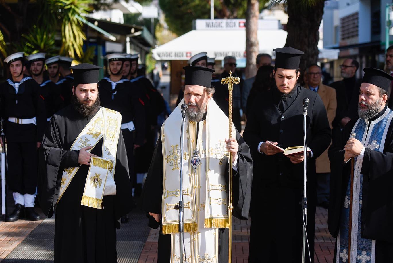 Παρουσία αγήματος και μπάντας του πολεμικού ναυτικού κατατέθηκαν στεφάνια στη μνήμη των πεσόντων, ενώ η τελετή ολοκληρώθηκε με την τήρηση ενός λεπτού σιγής και τον Εθνικό Ύμνο.