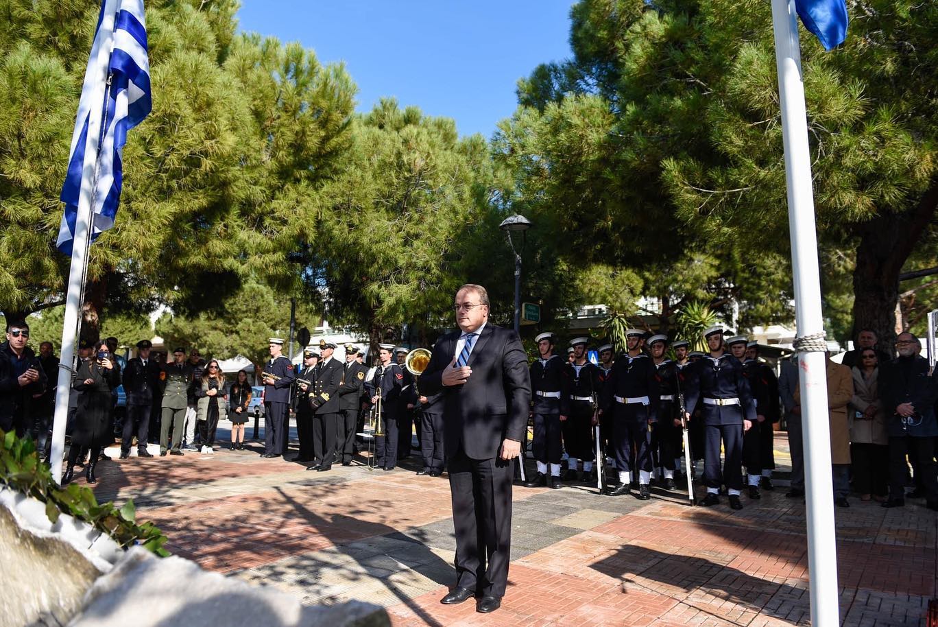 Νιώθουμε έντονα το βάρος της ευθύνης που έχουμε απέναντι στην ιστορία και στους νεκρούς της, να κρατήσουμε τη θυσία τους ως φάρο για να καθοδηγεί τις επιλογές μας και να διορθώνει τα λάθη μας. Έχουμε βαθιά υποχρέωση να κρατήσουμε τη μνήμη των Ηρώων μας ζωντανή, να τονίσουμε την αξία της θυσίας τους και να δώσουμε υπόσχεση τιμής, ότι είμαστε εδώ, έτοιμοι να υπερασπιστούμε κάθε γωνιά αυτής της χώρας. Από την μικρότερη βραχονησίδα μας, ως την τελευταία άκρη της εθνικής μας κυριαρχίας.