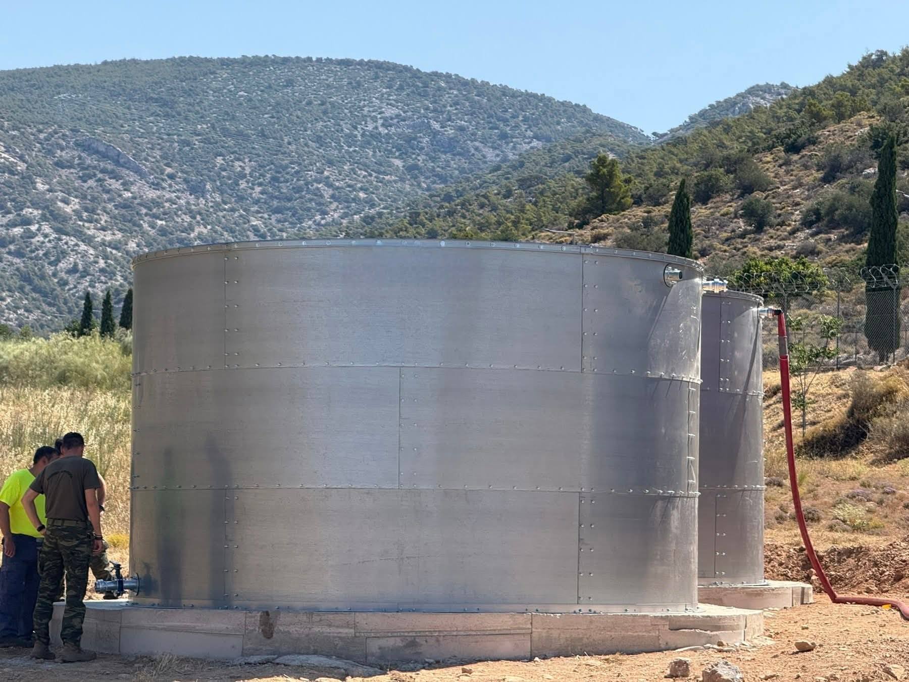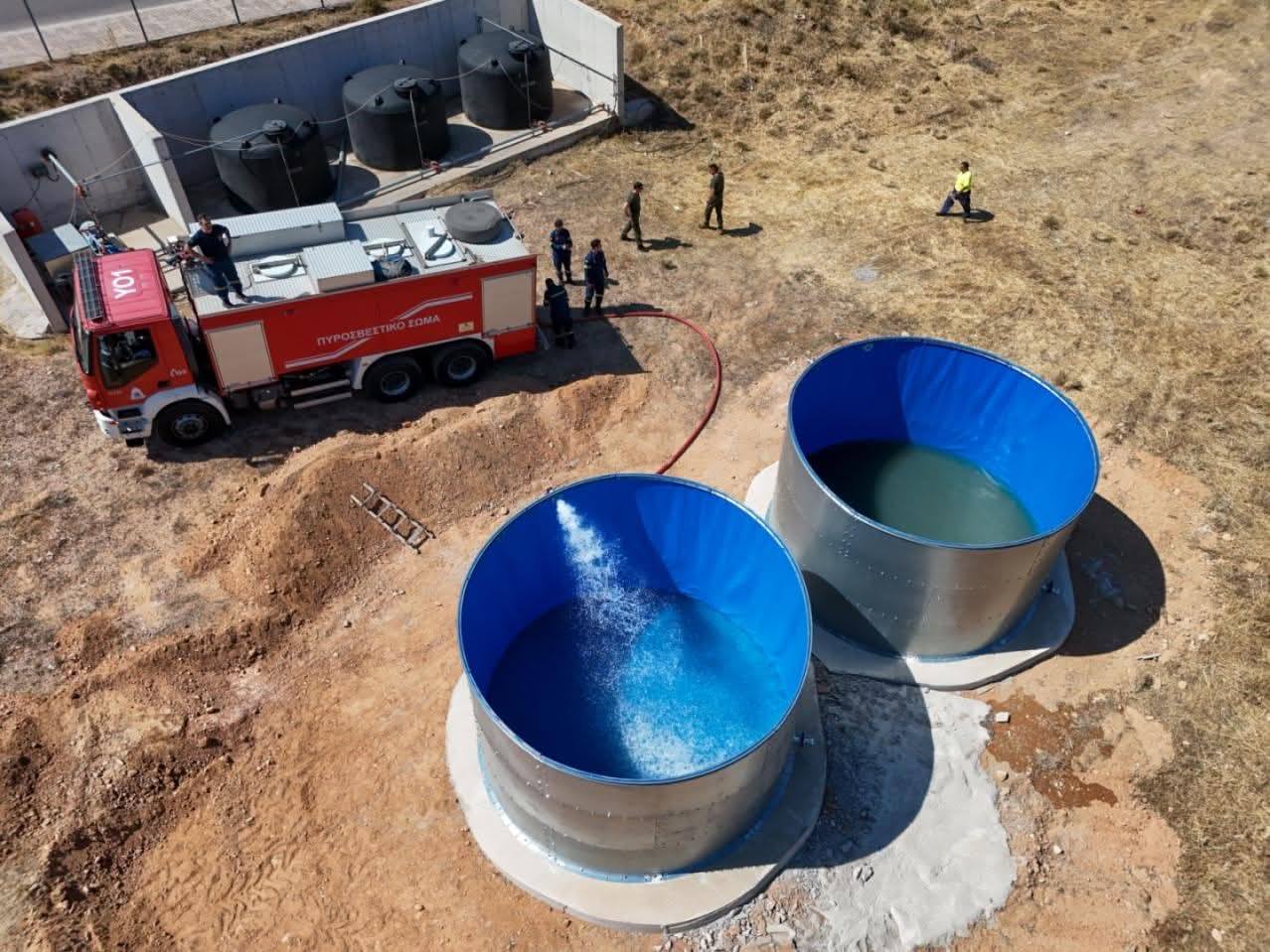 Η τοποθέτηση των νέων δεξαμενών πραγματοποιήθηκε σε συνεργασία με την Πυροσβεστική, το Δασαρχείο, την Πολεμική Αεροπορία και το στρατόπεδο ΕΤΗΜ στην Τερψιθέα.