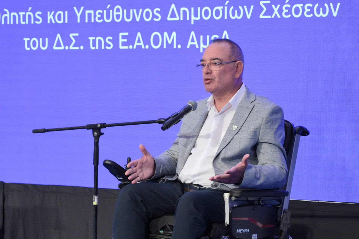 Ο παρααθλητής και Υπεύθυνος Δημοσίων Σχέσεων της ΕΑΟΜ-ΑμεΑ Ευάγγελος Κακοσαίος τόνισε ότι ο αθλητισμός για τα άτομα με αναπηρία δεν είναι απλό παιχνίδι αλλά απαιτεί μεγαλύτερη προσπάθεια και μετατρέπει την αναπηρία σε ευκαιρία. Επισήμανε πως αποτελεί τον πιο άμεσο δρόμο για την κοινωνική επανένταξη και την υπέρβαση σοβαρών δυσκολιών, προσφέροντας δύναμη και προοπτική.