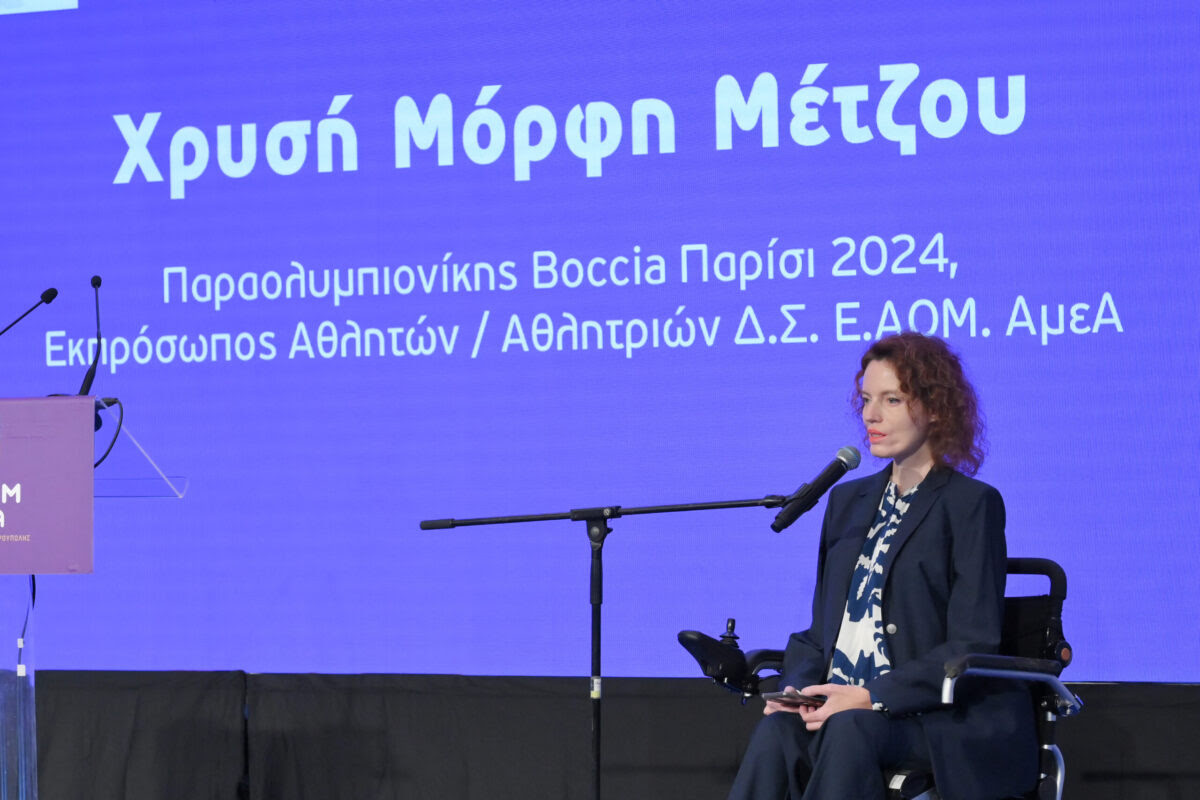 Η Παραολυμπιονίκης Χρυσή Μόρφη Μέτζου τόνισε ότι κάθε άτομο με αναπηρία που ασχολείται με τον αθλητισμό επιδεικνύει πράξη θάρρους. Υπογράμμισε ότι οι αθλητές με αναπηρία αντιμετωπίζουν πολλά εμπόδια όμως αντλούν δύναμη μέσα από τη σύνδεσή τους με την κοινωνία και μέσα από δομές όπως το Κέντρο ΑμεΑ που τους δίνουν τη δυνατότητα να προχωρούν και να διαπρέπουν.