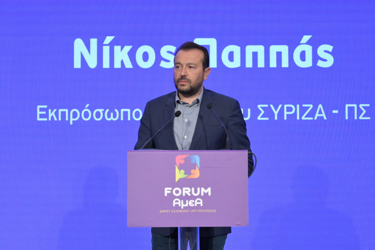 Ο Κοινοβουλευτικός Εκπρόσωπος του ΣΥΡΙΖΑ Νίκος Παππάς μίλησε με προσωπικό τόνο, αναφερόμενος στην εμπειρία της οικογένειάς του με άτομο με αναπηρία και στη σημασία της ηθικής και ψυχολογικής στήριξης. Εξέφρασε χαρμολύπη καθώς χαίρεται που πραγματοποιείται το πρώτο Forum πανελλαδικά για τα άτομα με αναπηρία αλλά λυπάται για την καθυστέρηση σημαντικών βημάτων από την Πολιτεία. Τόνισε ότι η λύση βρίσκεται στο να δοθεί στην τοπική αυτοδιοίκηση η δυνατότητα να αναπνεύσει, να δημιουργήσει και να αποκτήσει τον απαραίτητο εξοπλισμό για να υλοποιήσει μεγάλα έργα στον τομέα αυτό.