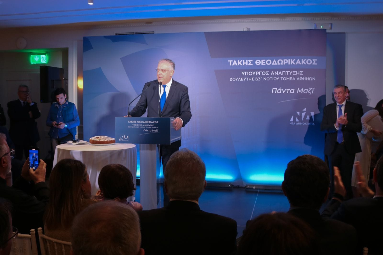 Στο Golf της Γλυφάδας, παρουσία τριών χιλιάδων πολιτών, Υφυπουργών και βουλευτών της ΝΔ, Δημάρχων των Νοτίων Προαστίων και συνεργατών του, έκοψε την πρωτοχρονιάτικη πίτα του το πολιτικό γραφείο του Υπουργού Ανάπτυξης και βουλευτή Β3’ Νότιου Τομέα Αθηνών Τάκη Θεοδωρικάκου. Τη βασιλόπιτα ευλόγησε ο Σεβασμιώτατος Μητροπολίτης Γλυφάδας Αντώνιος.