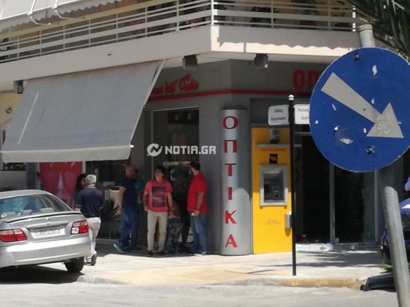 Την ώρα που έκαναν τον εφοδιασμό του ΑΤΜ της Πειραιώς, που βρίσκεται μέσα σε κατάστημα οπτικών, έσπασε την τζαμαρία και άρχισε να πυροβολεί για να πείσει τον υπάλληλο να του παραδώσει τα χρήματα.