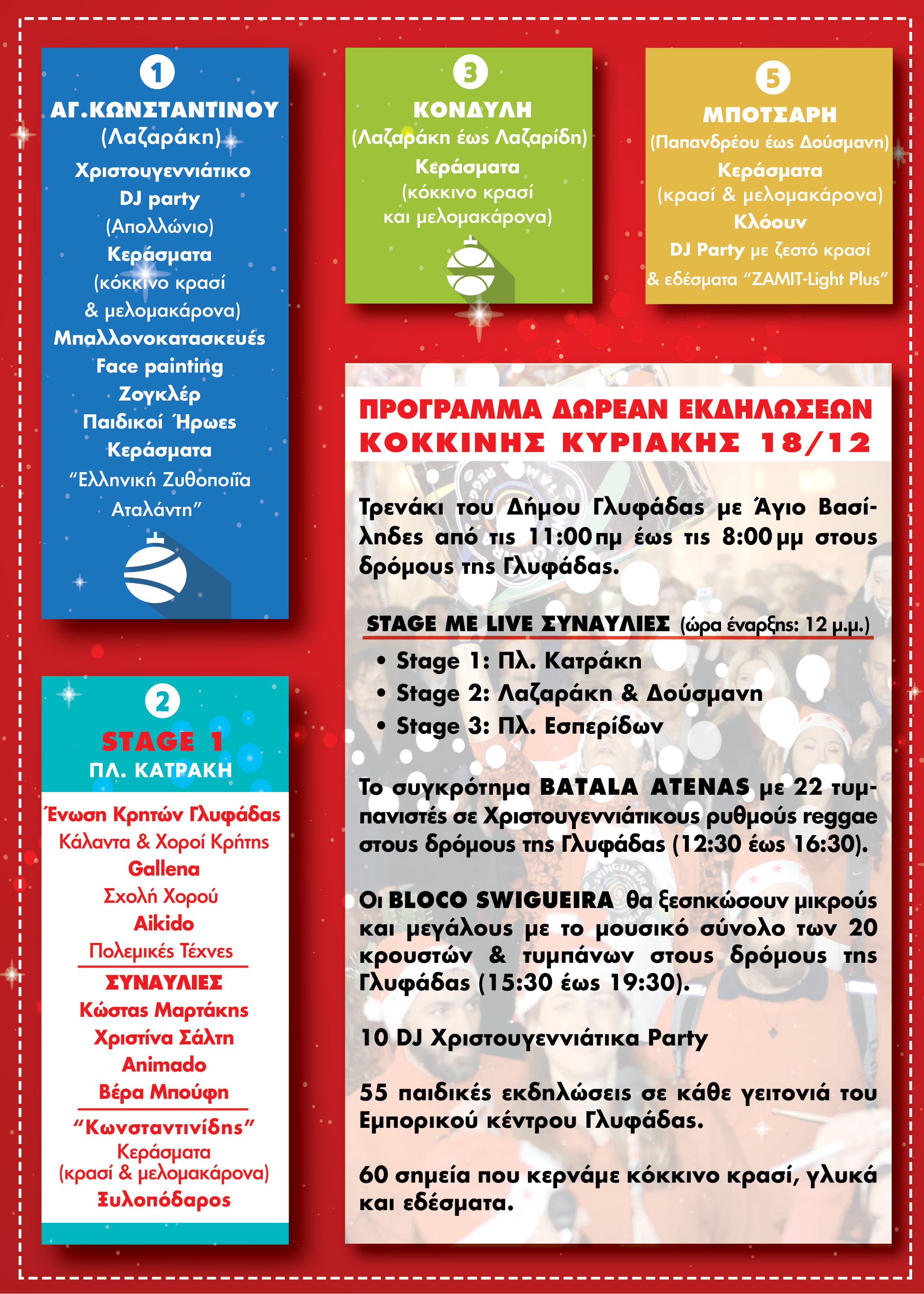 Με πλήθος εκδηλώσεων, παραστάσεων και συναυλιών θα πραγματοποιηθεί αυτή την Κυριακή μια μεγάλη χριστουγεννιάτικη γιορτή στη Γλυφάδα.