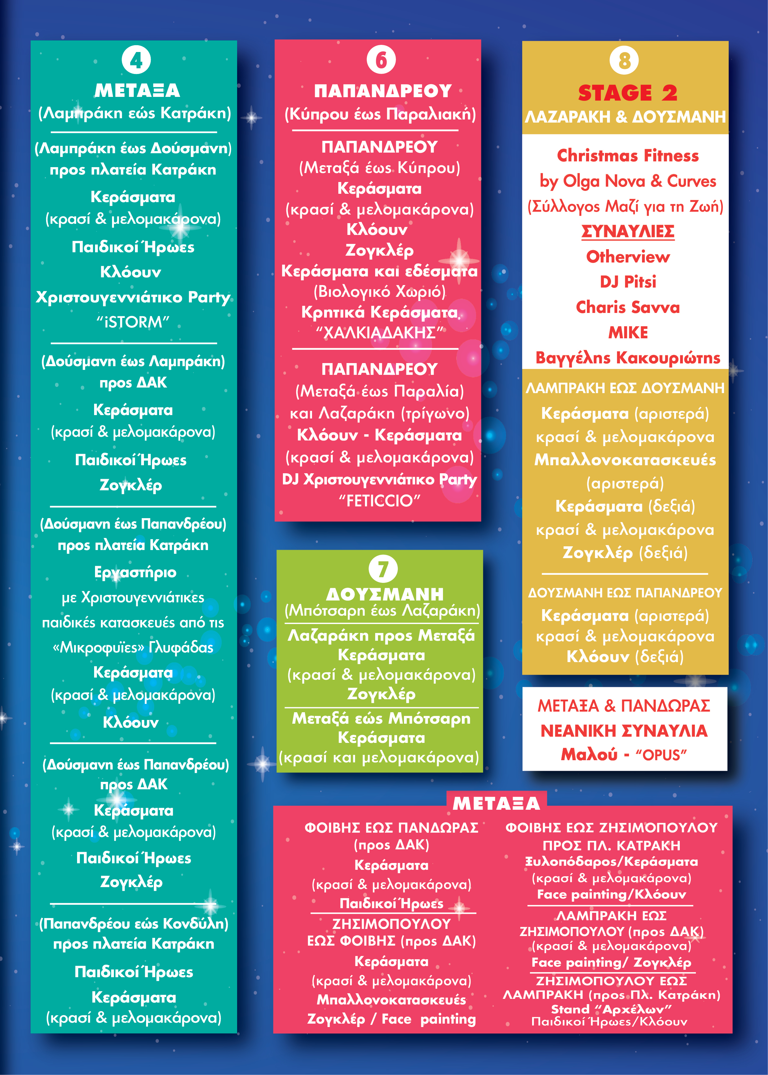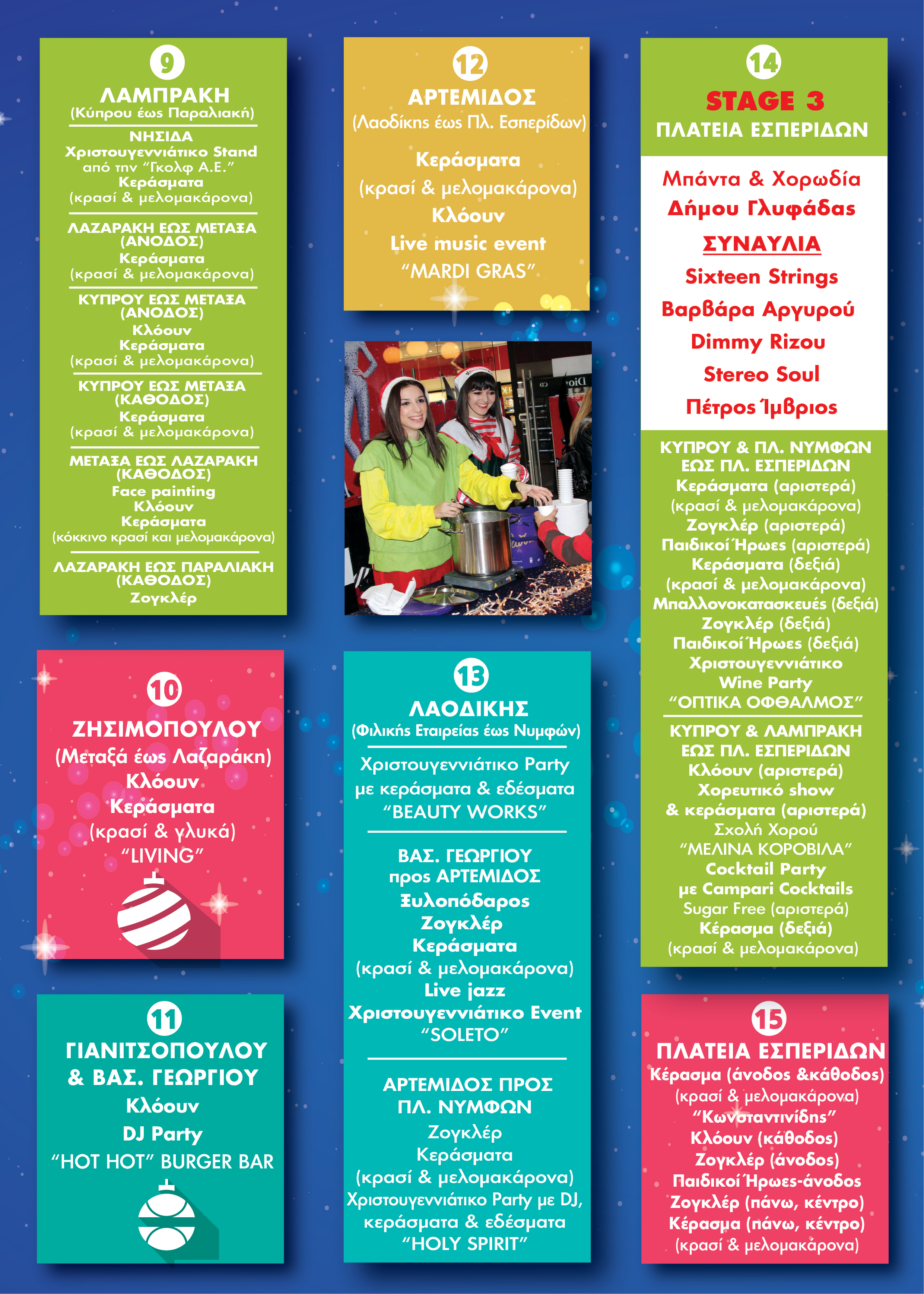 1) Συναυλίες με τους: Πέτρο Ίμβριο, Κώστα Μαρτάκη, Χριστίνα Σάλτη, Animado, Βέρα Μπούφη, Christmas Fitness, Otherview, DJ Pitsi, Charis Savva, Mike, Malou, Sixteen Strings, Βαρβάρα Αργυρού, Dimmy Rizou, Stereo Soul