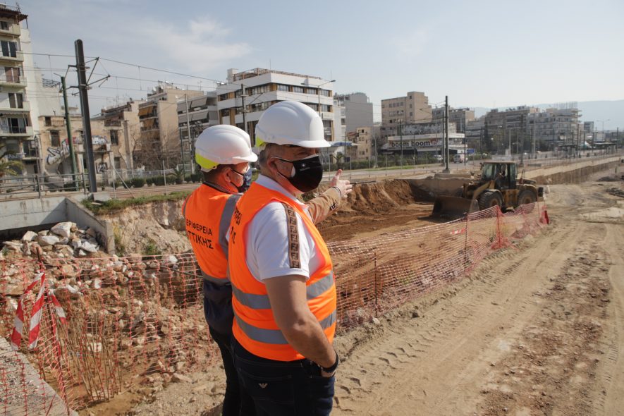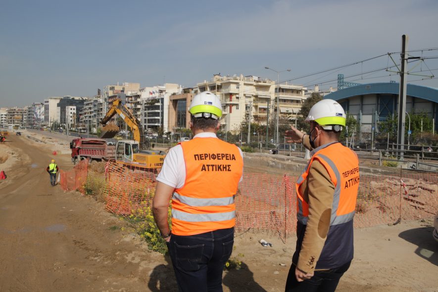 Ο κ. Πατούλης, συνοδευόμενος από την αντιπεριφερειάρχη Νότιου Τομέα Δ. Νάνου και από το Διευθυντή Τεχνικών Έργων Α. Καλογερόπουλο, επισκέφθηκε τα υπό εξέλιξη έργα και ενημερώθηκε από τον Εκτελεστικό Πρόεδρο της αναδόχου (Άκτωρ) Χρήστο Παναγιωτόπουλο για την πορεία υλοποίησης της Α’ Φάσης.