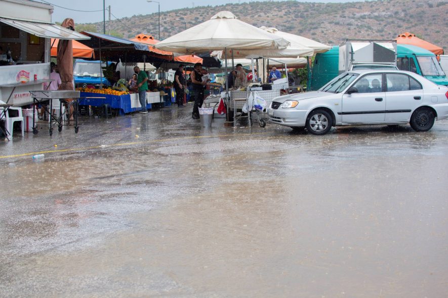 Πιο θαρραλέοι από τους υπόλοιπους αλλά ταυτόχρονα άτυχοι, οι έμποροι της λαϊκής αγοράς που λειτουργεί κάθε Παρασκευή στην περιοχή της Βάρκιζας. Οι δρόμοι γύρω από το Ναυτικό Όμιλο της Βάρκιζας στην περιοχή της παραλίας πλημμύρισαν με νερά που δυσκόλεψαν τους εμπόρους. Πολλοί επαγγελματίες έμειναν στη θέση τους και περίμεναν να ηρεμήσει η καταιγίδα, με μερικούς βέβαια να μαζεύουν τους πάγκους τους και να αποχωρούν.