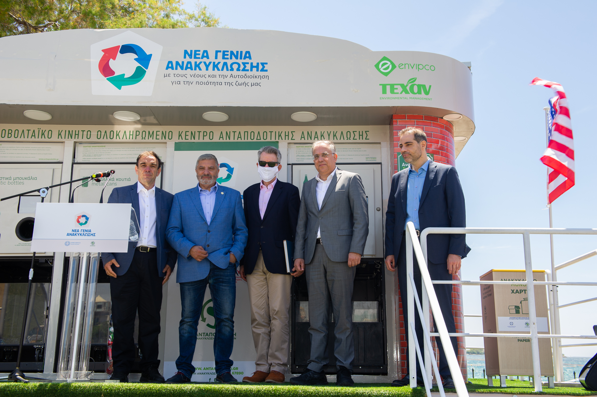 Ο Αμερικανός πρεσβευτής κ. Geoffrey Pyatt μεταξύ άλλων είπε: «Η εκπληκτική διαχείριση της πανδημίας από την ελληνική κυβέρνηση θα αρχίσει πραγματικά να αποδίδει τώρα καθώς σιγά – σιγά ξανανοίγει η οικονομία και αρχίζει η χώρα να υποδέχεται και πάλι τους πρώτους τουρίστες. Είχα την ευκαιρία να συζητήσω με τον υπουργό Εσωτερικών κ. Θεοδωρικάκο -στην πολύ στενή συνεργασία που είχαμε ούτως ή άλλως καθ’ όλη τη διάρκεια της πανδημίας του Covid– 19- και την ανάγκη να συνεχιστεί η στενή συνεργασία ιδιαίτερα σε ό,τι αφορά στα θέματα περιβάλλοντος και ανακύκλωσης. Όλα αυτά τα ζητήματα επιβάλλουν πολύ στενή συνεργασία μεταξύ των ΗΠΑ και όλων των εταίρων της. Σήμερα λοιπόν γιορτάζουμε και την παγκόσμια ημέρα περιβάλλοντος και ταυτόχρονα γιορτάζουμε και την έναρξη της επαναλειτουργίας των ακτών της Αττικής. Είμαι ιδιαίτερα υπερήφανος και χαρούμενος που βρίσκομαι εδώ για να εγκαινιάσουμε το πρώτο ολοκληρωμένο κέντρο Ανταποδοτικής Ανακύκλωσης της Envipco. Αυτό το κινητό περίπτερο Ανακύκλωσης με φωτοβολταϊκά παρουσιάσθηκε για πρώτη φορά στη ΔΕΘ το 2018 και συνάδει με όλη την κείμενη νομοθεσία του ελληνικού κράτους σε ό,τι αφορά στον διαχωρισμό στην πηγή των διαφόρων απορριμμάτων, ώστε να έχουμε πρώτη ύλη υψηλής ποιότητας που θα μπορεί στη συνέχεια να ανακυκλωθεί και να είναι χρήσιμη για την παρασκευή νέων προϊόντων. Το πολύ σημαντικό ατού αυτού του περιπτέρου είναι ότι είναι μεταφερόμενο. Επομένως μπορεί να μεταφερθεί σε όλες τις παραλίες της Αττικής – και όχι μόνο– αλλά και στα νησιά, βοηθώντας έτσι να αναπτυχθεί και να εμπεδωθεί μια κουλτούρα ανακύκλωσης η οποία μπορεί να βοηθήσει πολύ το περιβάλλον και να συμβάλλει στην ανακύκλωση, ιδιαίτερα των αποβλήτων σε πλαστικό. Τον περασμένο Δεκέμβρη είχα την ευκαιρία να παραστώ στα εγκαίνια του πρώτου εργοστασίου ανακύκλωσης της Envipco στην Παλλήνη, όπου εκεί ο ίδιος ο πρωθυπουργός ανακοίνωσε το άμεσο σχέδιό του για την πολύ σημαντική μείωση και πλήρη εξάλειψη των αποβλήτων σε πλαστικό. Αυτού του είδους τα μέτρα, τα οποία εξήγγειλε ο πρωθυπουργός, θα βοηθήσουν όχι μόνο στη διατήρηση της εκπληκτικής ομορφιάς περιβάλλοντος της Ελλάδος και στη διατήρηση της πολιτιστικής κληρονομιάς της χώρας, αλλά επίσης θα βοηθήσουν στις αμερικανικές επενδύσεις στη χώρα, σε ένα πεδίο όπου οι ΗΠΑ έχουν την πρωτοκαθεδρία σε ό,τι αφορά την τεχνογνωσία, την έρευνα και την ανάπτυξη»
