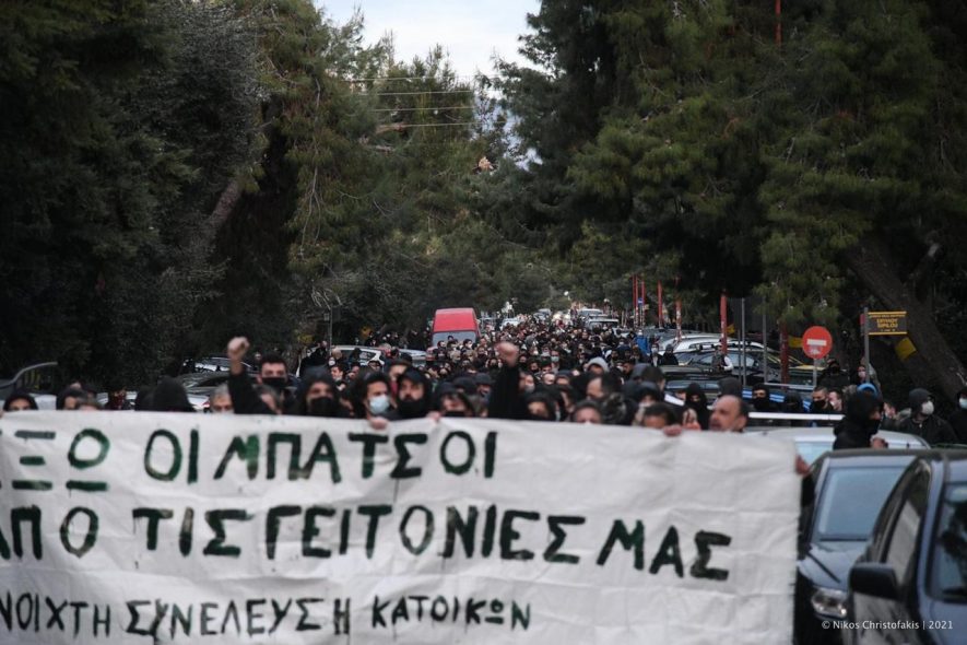 Οι συγκεντρωμένοι έφτασαν έξω από το Αστυνομικό Τμήμα της περιοχής το οποίο φυλάσσεται από ισχυρές δυνάμεις. Μάλιστα κάτοικοι βγήκαν στα μπαλκόνια τους και χειροκροτούσαν την ώρα που περνούσε η πορεία. Στη συνέχεια η πορεία κατευθύνθηκε προς το δημαρχείο όπου επίσης υπήρχε ισχυρή παρουσία δυνάμεων καταστολής και οι αστυνομικοί έκαναν χρήση χημικών και βομβίδων κρότου λάμψης, διαλύοντας τους συγκεντρωμένους.