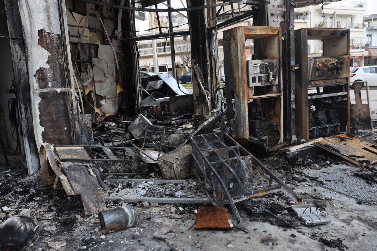 Όλα συνέβησαν γύρω στις 4 τα ξημερώματα, όταν τέσσερις κουκουλοφόροι έφτασαν με ΙΧ στο πρατήριο. Οι δράστες απείλησαν τον υπάλληλο με όπλο, τον έγδυσαν και του αφαίρεσαν το κινητό, περιέλουσαν το χώρο με εύφλεκτο υγρό που είχαν σε μπιτόνια, έβαλαν φωτιά και εξαφανίστηκαν. Οι εκρήξεις που ακολούθησαν προκάλεσαν πανικό στην περιοχή.