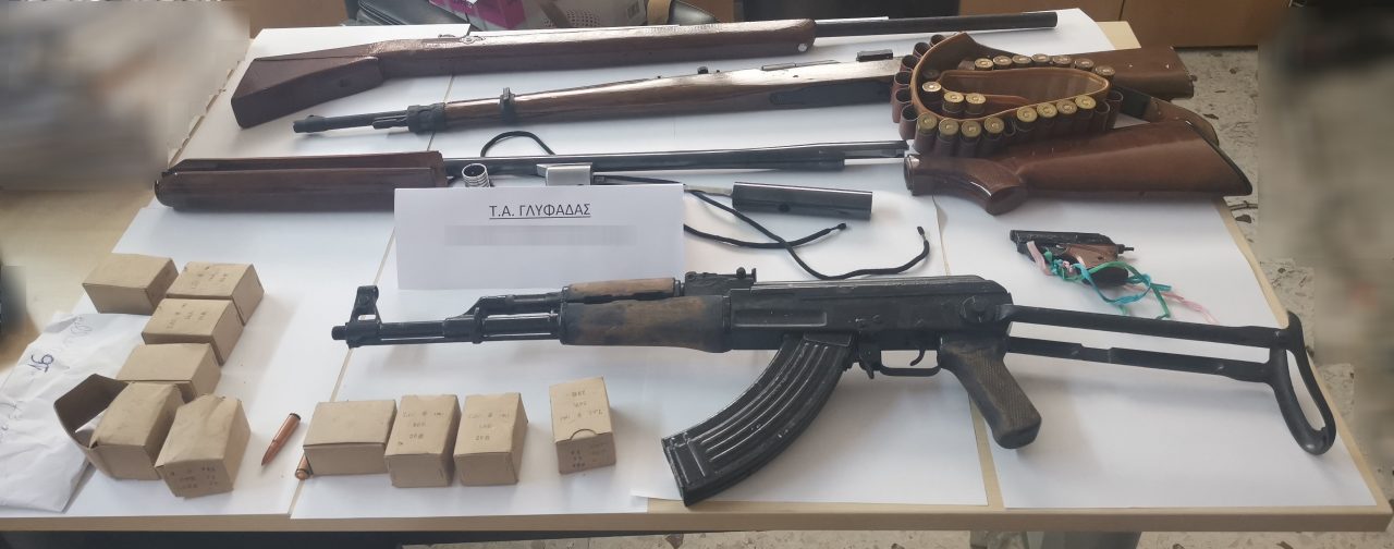 Κανονικό οπλοστάσιο ανακάλυψε η αστυνομία σε δύο σπίτια στη Γλυφάδα