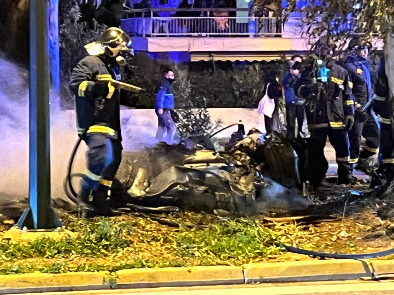 Τροχαίο δυστύχημα σημειώθηκε το βράδυ της Πέμπτης επί της οδού Κωνσταντίνου Καραμανλή στη Βούλα- Νεκρός ο οδηγός του πολυτελούς αυτοκινήτου το οποίο παραδόθηκε στις φλόγες- Πληροφορίες αναφέρουν πως πρόκειται για τον αδερφό της βουλευτού της ΝΔ Κατερίνας Μονογυιού.
