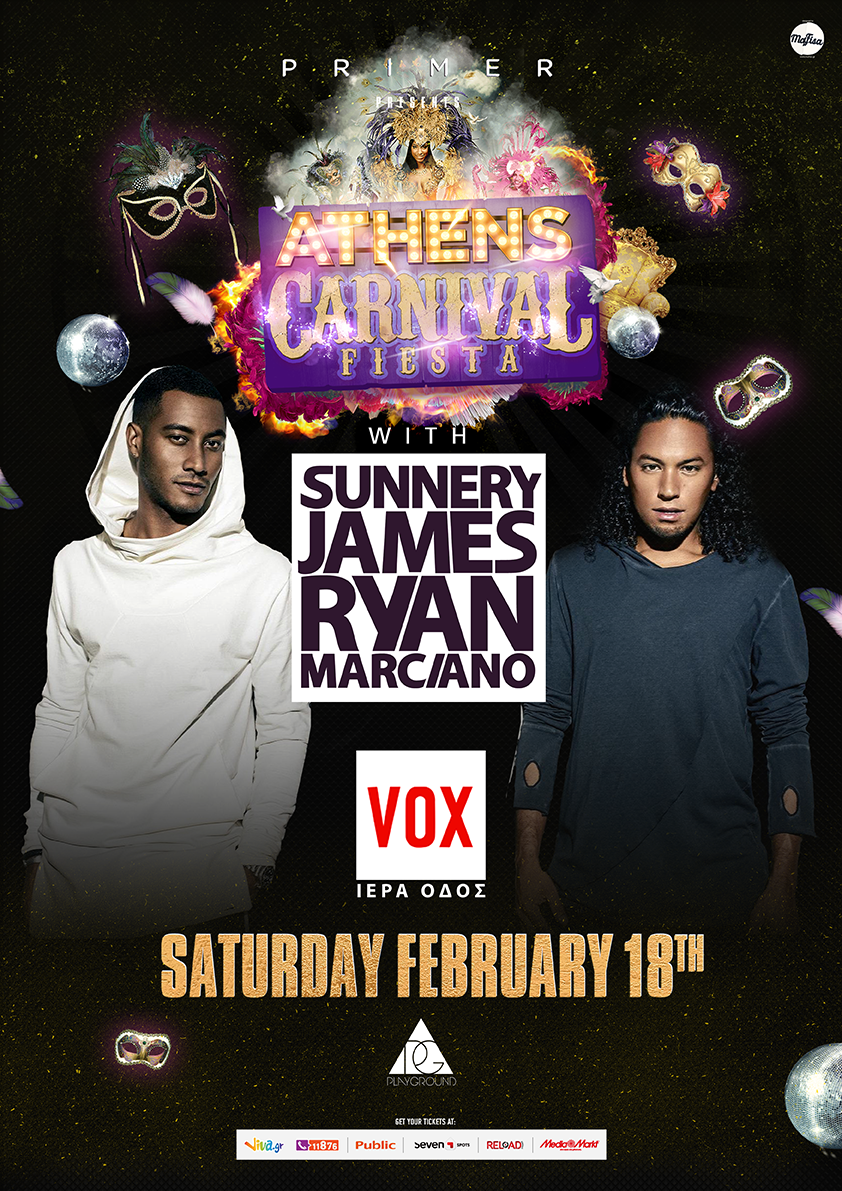 To Σάββατο λίγο μετά τις 22:00, το VOX στο Γκάζι σε περιμένει για το Athens Carnival Fiesta.Φέρνει κοντά σας ένα εκρηκτικό line-up εγχώριων και ξένων DJs με special guests και headliners της βραδιάς τους Ολλανδούς superstar Sunnery James & Ryan Marciano, οι οποίοι υπόσχονται να σας χαρίσουν το πιο sexy club show που έχει πραγματοποιηθεί ποτέ στην πόλη!