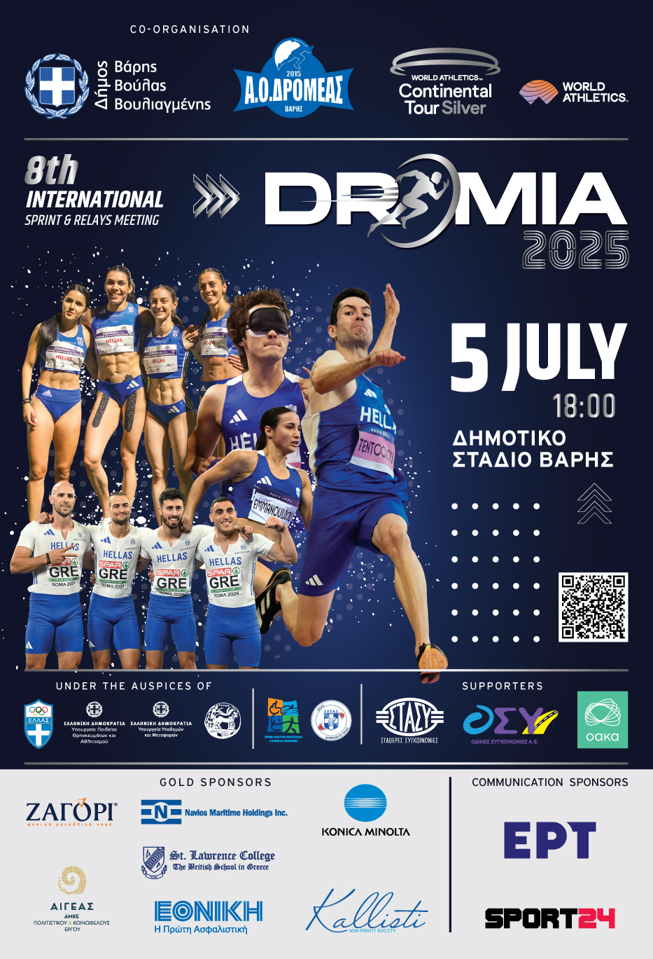 Τα «Dromia» έχουν καθιερωθεί ως ένα από τα πλέον αναγνωρίσιμα και δυναμικά meetings στίβου στην ευρύτερη περιοχή της Μεσογείου, συγκεντρώνοντας κορυφαίους Έλληνες και διεθνείς αθλητές στα 100μ, 200μ και τις σκυταλοδρομίες. Φέτος, το επίπεδο της διοργάνωσης απογειώνεται με την επιβεβαιωμένη συμμετοχή του Ολυμπιονίκη και Παγκόσμιου Πρωταθλητή στο άλμα εις μήκος, Μίλτου Τεντόγλου, ενός αθλητή-σύμβολο του ελληνικού αθλητισμού.