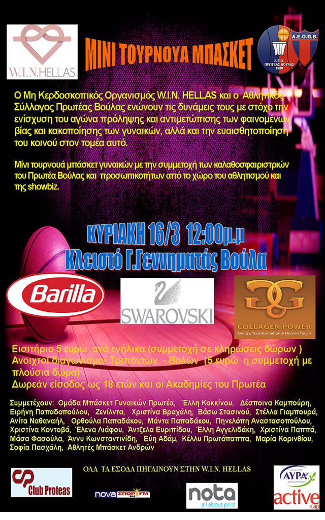 Η ανακοίνωση του Πρωτέα αναφέρει: “Σας περιμένουμε όλους την Κυριακή 16 Μαρτίου (12:00-15:00) στο Κλειστό Γ.Γεννηματάς της Βούλας, ώστε να χαρούμε τον αθλητισμό και να διαλύσουμε κάθε σύννεφο φαινομένων βίας απέναντι στις γυναίκες και την κοινωνία μας”.