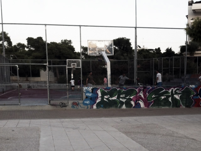 Γήπεδο περισσότερο “παρεΐστικο”. Από το ’93 που χτίστηκε και για μια καμιά 10αριά χρόνια γινόταν το έλα-να-δεις. Χαμός για να πιάσεις μια θέση, σε σημείο να παίζουν 8 (πάντα μέχρι τα 15) και 20 άτομα να περιμένουν. Ιστορικές μάχες, με μπόλικο θέαμα, αφού το σηκώνει η περίσταση: συγκεκριμένα οι μικρότερες διαστάσεις και η χαμηλότερη μπασκέτα που εμπνέουν για παιχνίδι στη στεφάνη και τρίποντα σχεδόν από το κέντρο.