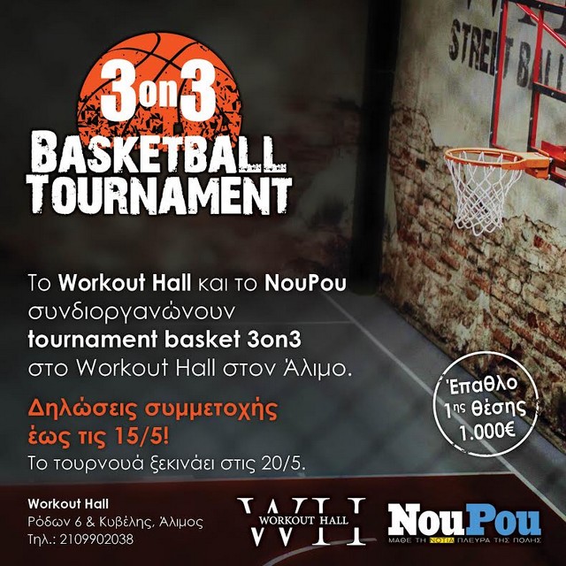 Ο πραγματικός Βασιλιάς του μπασκετικού Νότου βγαίνει στα 3on3. Και φέτος συγκεκριμένα βγαίνει στο 3on3 τουρνουά που διοργανώνει το Workout Hall και το Nou-Pou.gr με 40 ομάδες να διεκδικούν το έπαθλο των 1000 ευρώ και φυσικά την υπερηφάνεια του καλύτερου των Νοτίων. Συμπλήρωσε τη φόρμα, στείλ’ τη στο info@workouthall.gr και συνεχίζουμε.