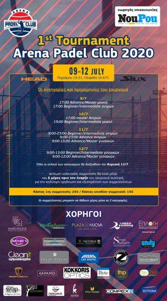 Μετά και τα πετυχημένα εγκαίνια που πραγματοποίησε το καινούργιο Arena Padel Club, στα οποία παρευρέθηκαν τα κορυφαία ονόματα του χώρου, Luciano Capra και Alvaro Cepero Rodruigez, με θέσεις 20 και 35 αντίστοιχα της Παγκόσμιας κατάταξης, διοργανώνει το 1ο τουρνουά Padel για το 2020 από τις 9 μέχρι και τις 12 Ιουλίου.