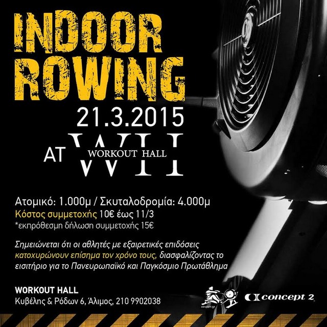 Για αυτούς που λατρεύουν να τραβούν κουπί (κυριολεκτικά και μεταφορικά) το Workout Hall διοργανώνει τρεις αγωνιστικές C2 Indoor Rowing, για να σας βοηθήσει να προετοιμαστείτε για το Πανελλήνιο Πρωτάθλημα της All About Sports.