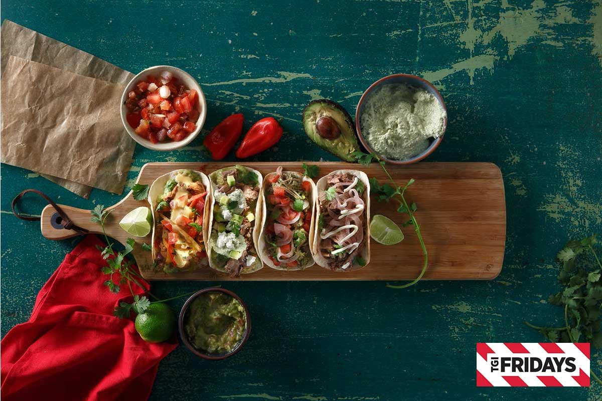 Και επειδή το Μεξικό, θέλει τα tacos του, τα TGI Fridays™ ετοιμάζουν τέσσερις διαφορετικές γεύσεις για όλα τα γούστα. Chicken & Pepper Tacos, Chimichurri Pork με σιγομαγειρεμένο χοιρινό, Beef Brisket και Jalapeno Cream Brisket Tacos με αβοκάντο και κατσικίσιο τυρί, για να βρεις το δικό σου αγαπημένο!