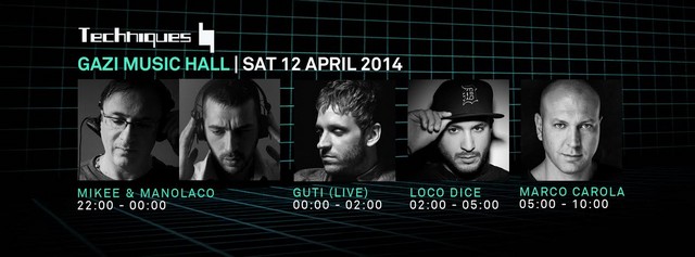 Το Σάββατο 12 Απριλίου 2014, τρεις σπουδαίοι καλλιτέχνες της παγκόσμιας ηλεκτρονικής ελίτ, ο Μarco Carola, ο Loco Dice και ο Guti θα κάνουν τις καρδιές των clubbers να χτυπήσουν δυνατά σε μια πραγματική συνάντηση κορυφής στο Gazi Music Hall από τις 10 το βράδυ έως τις 10 το πρωί!