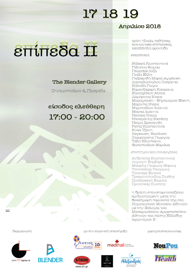 Η ΑμΚΕ τετARTημόριο παρουσιάζει σε συνεργασία με την The Blender Gallery το κοινωνικοπολιτιστικό δρώμενο “Επίπεδα II”, με στόχο την ενημέρωση του κοινού σε παθήσεις της τρίτης ηλικίας (όπως η άνοια) και τα παράγωγα κοινωνικά προβλήματα που δημιουργούν.
