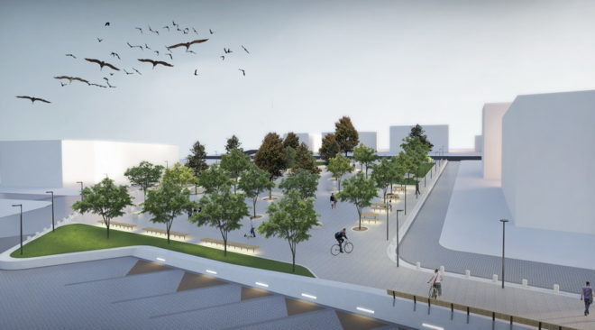 Μεγάλες επιφάνειες, λευκό τσιμέντο και βοτσαλωτό δάπεδο είναι οι κύριοι πρωταγωνιστές της νέας πλατείας που θα αναβαθμίσει αισθητικά την περιοχή. Οι μελετητές αναφέρουν στην Τεχνική Έκθεση πως «πρόκειται για μία σχεδιαστική προσέγγιση που επιθυμεί να αναδείξει τον υπερτοπικό της χαρακτήρα».