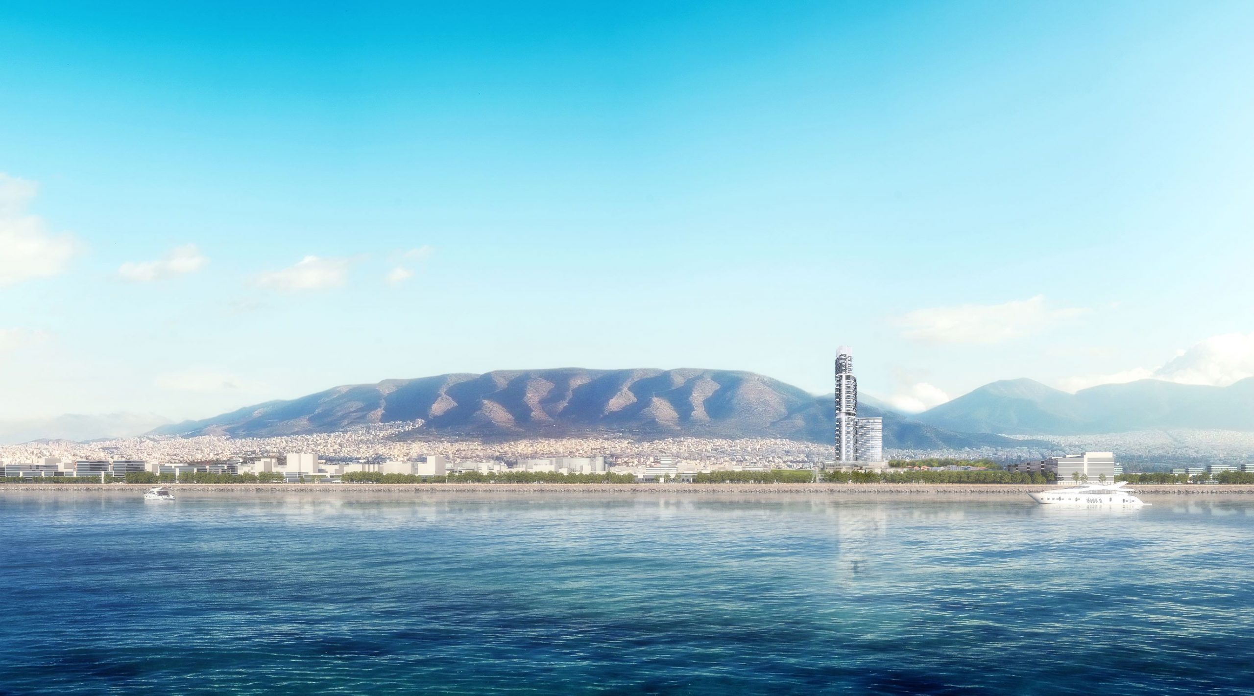 Ο κεντρικός Πύργος είναι εμπνευσμένος από ναυτικές αναφορές, ενσωματώνοντας στο σχεδιασμό του τα κύματα, τα πανιά και τον φάρο. Χτισμένος σε τρία επίπεδα, ο Πύργος έχει τρεις διαφορετικούς προσανατολισμούς που αντιστοιχούν στα σημεία αναφοράς που βρίσκονται μέσα στο νοητό τρίγωνο που σχηματίζεται γύρω από το έργο: την Ακρόπολη, τη θάλασσα και τον Υμηττό. Το εμβληματικό του σχήμα θα αποτελέσει ορόσημο της περιοχής αναδεικνύοντας τη σημασία της σύνδεσης μεταξύ ξηράς, θάλασσας και ουρανού.