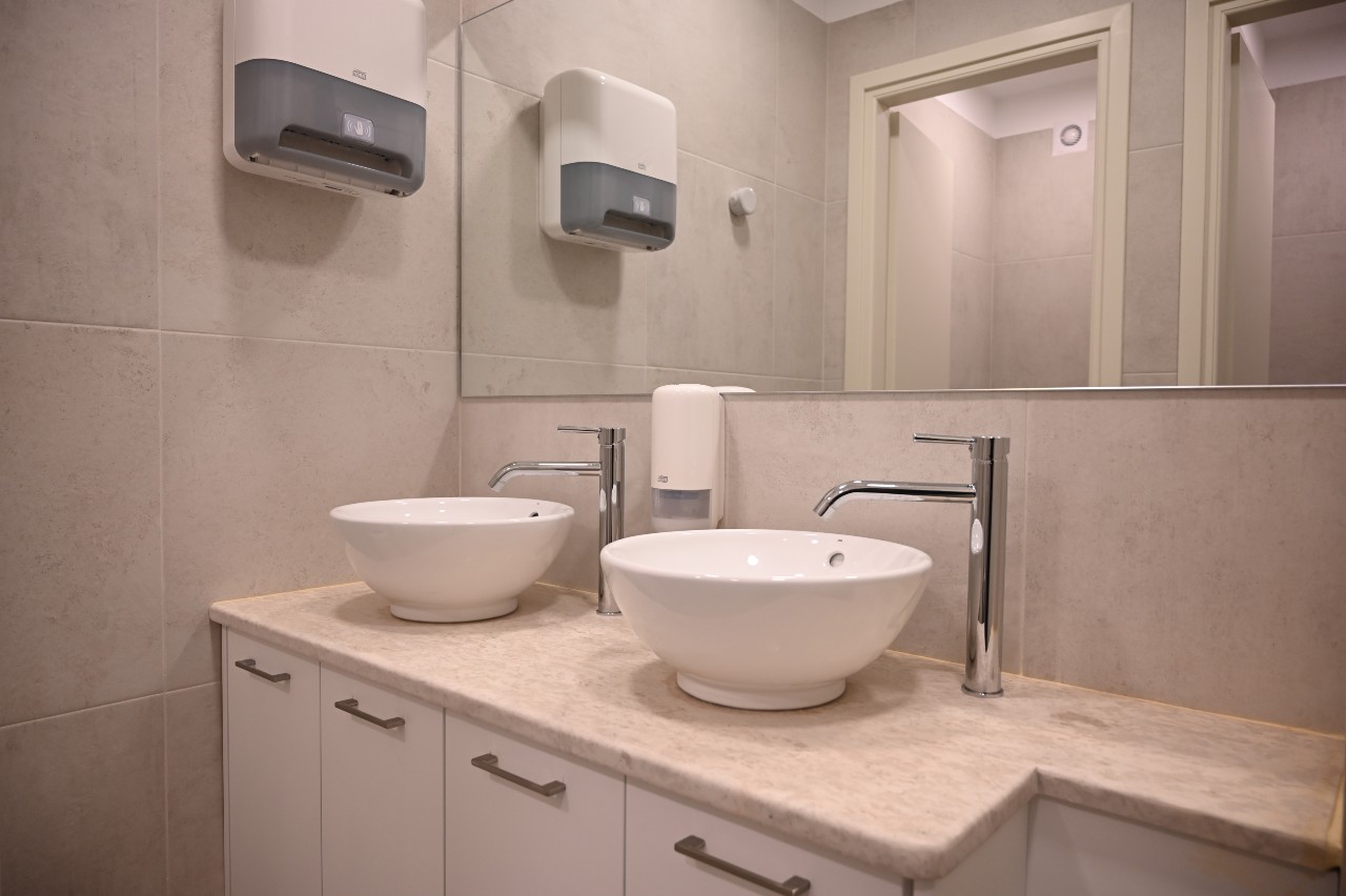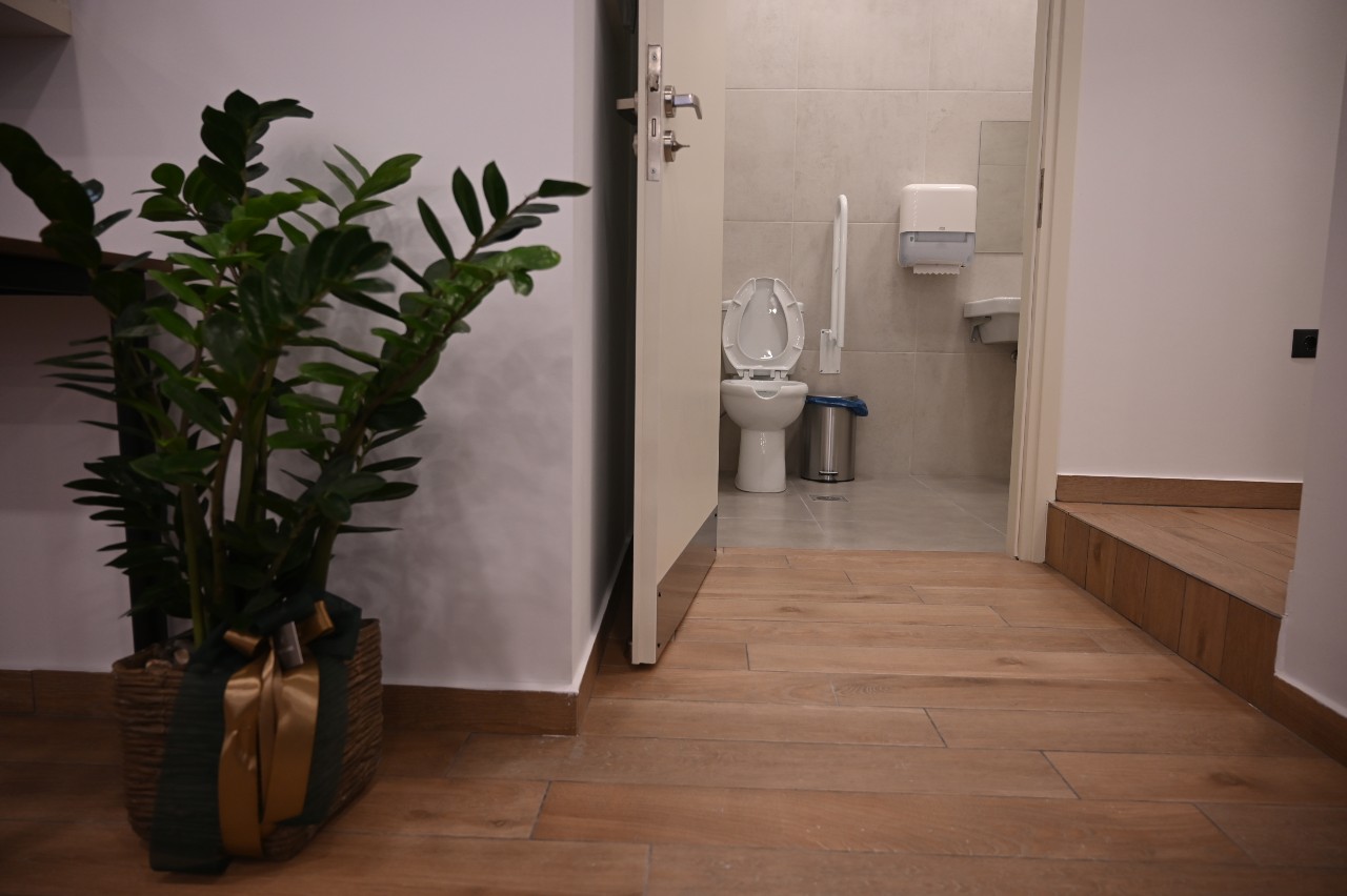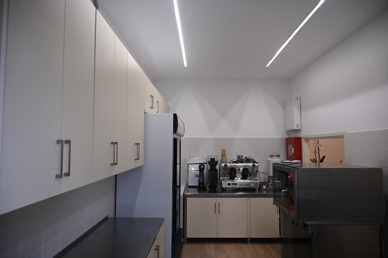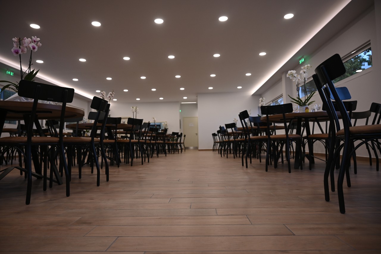 Η εταιρεία πέρασε νέα αποχετευτικά, έριξε μπετό και κατόπιν προχώρησε στην κατασκευή του εσωτερικού χώρου, τοποθετώντας δάπεδο, ψευδοροφές και συστήματα ψύξης/θέρμανσης. Το νέο αναψυκτήριο, το οποίο έχει εμβαδό 200 τ.μ., διαθέτει κουζίνα, 4 τουαλέτες – 2 για άνδρες και 2 για γυναίκες– καθώς και μία ανεξάρτητη για άτομα ΑΜΕΑ.