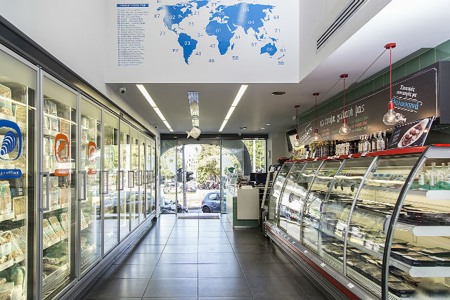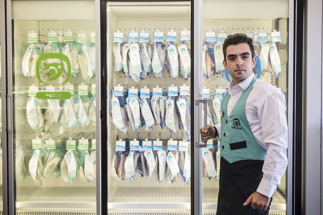 Η πόρτα του καταστήματος θυμίζει ενυδρείο (γενικώς όλα τα καταστήματά τους είναι σούπερ ντιζαϊνάτα, κάτι που αντικατοπτρίζει την αισθητική και την κουλτούρα τους και δεν επηρεάζει καθόλου προς τα πάνω την τελική τιμή των προϊόντων) και με το που πατάς το πόδι σου εντός του ένας ολόκληρος κόσμος ψαριών και θαλασσινών σε υποδέχεται, μαζί με το χαμογελαστό και άκρως εξειδικευμένο προσωπικό. Μια καθαρόαιμη ‘μπουτίκ’ θαλασσινών που όμοιά της δεν έχεις ξαναδεί.